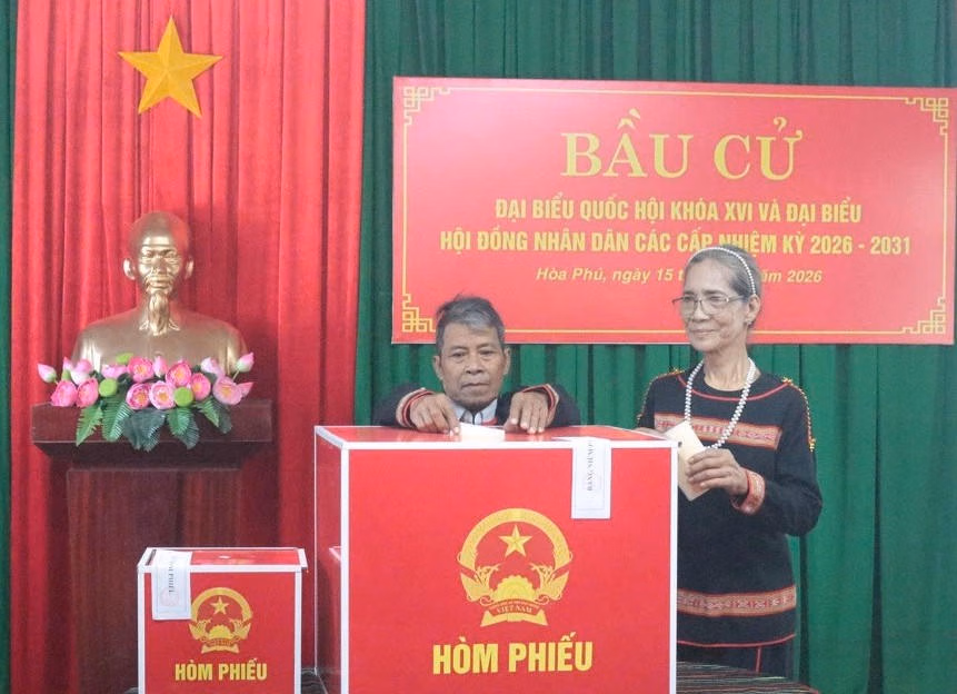 Ghi nhận tại những điểm bỏ phiếu, cử tri nâng niu lá phiếu bỏ vào hòm phiếu để thể hiện quyền và nghĩa vụ công dân của cử tri. Qua đó, cử tri cũng gửi gắm niềm tin, khát vọng vào sự phát triển của Đắk Lắk trong nhiệm kỳ mới.