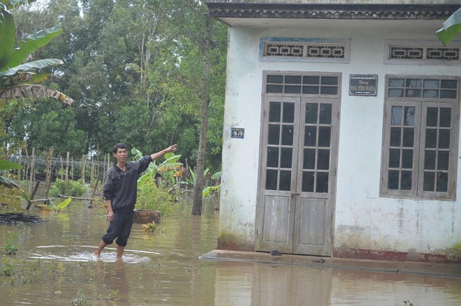 Cũng theo lời anh Thành, gần nhà anh có trường hợp của cụ bà Nguyễn Thị Tiêu (SN 1929) rất đáng thương. Cụ Tiêu là mẹ liệt sĩ, sống neo đơn, hơn 10 năm trước được huyện xây cho căn nhà tình nghĩa. Thế nhưng thời gian gần đây, cụ đã phải bỏ nhà đi nơi khác tá túc vì nước ngập.