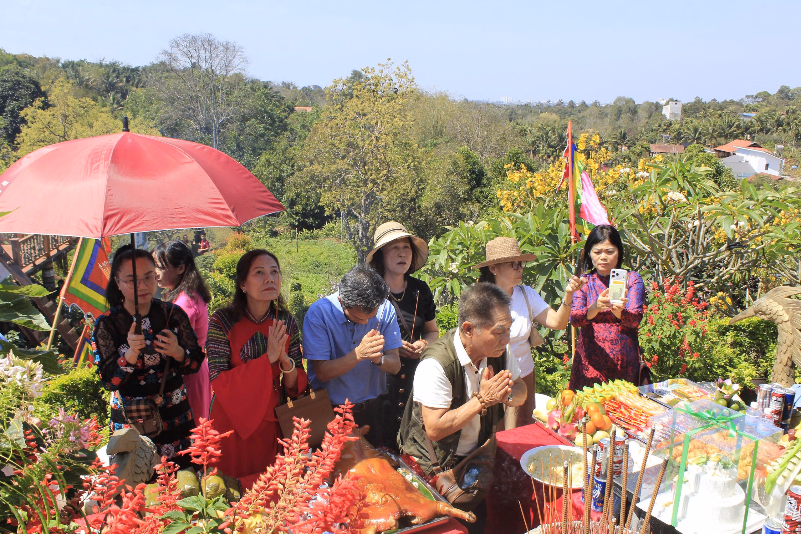 Trong không khí linh thiêng, đoàn rước với cờ hội, đuốc, kiệu hoa và đội nghi lễ đã thực hiện các nghi thức truyền thống dâng hương tưởng niệm Quốc mẫu Âu Cơ. Tại khu vực Đồi Quốc mẫu, các đại biểu cùng du khách đã thành kính dâng hoa, dâng hương cầu mong quốc thái dân an, mưa thuận gió hòa, Nhân dân ấm no, hạnh phúc.