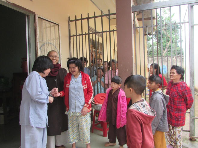Cứ dăm bữa nửa tháng, người dân lại đưa tới chùa vài đứa trẻ, vài cụ già, thậm chí là người tàn tật, thần kinh… nhờ chăm sóc. Với tâm nguyện “dẫu xây chín bậc phù đồ/Chẳng bằng làm phúc cứu cho một người”, các sư cô, sa di trong chùa không quản ngại khó khăn, vất vả, vẫn niềm nở đón nhận.