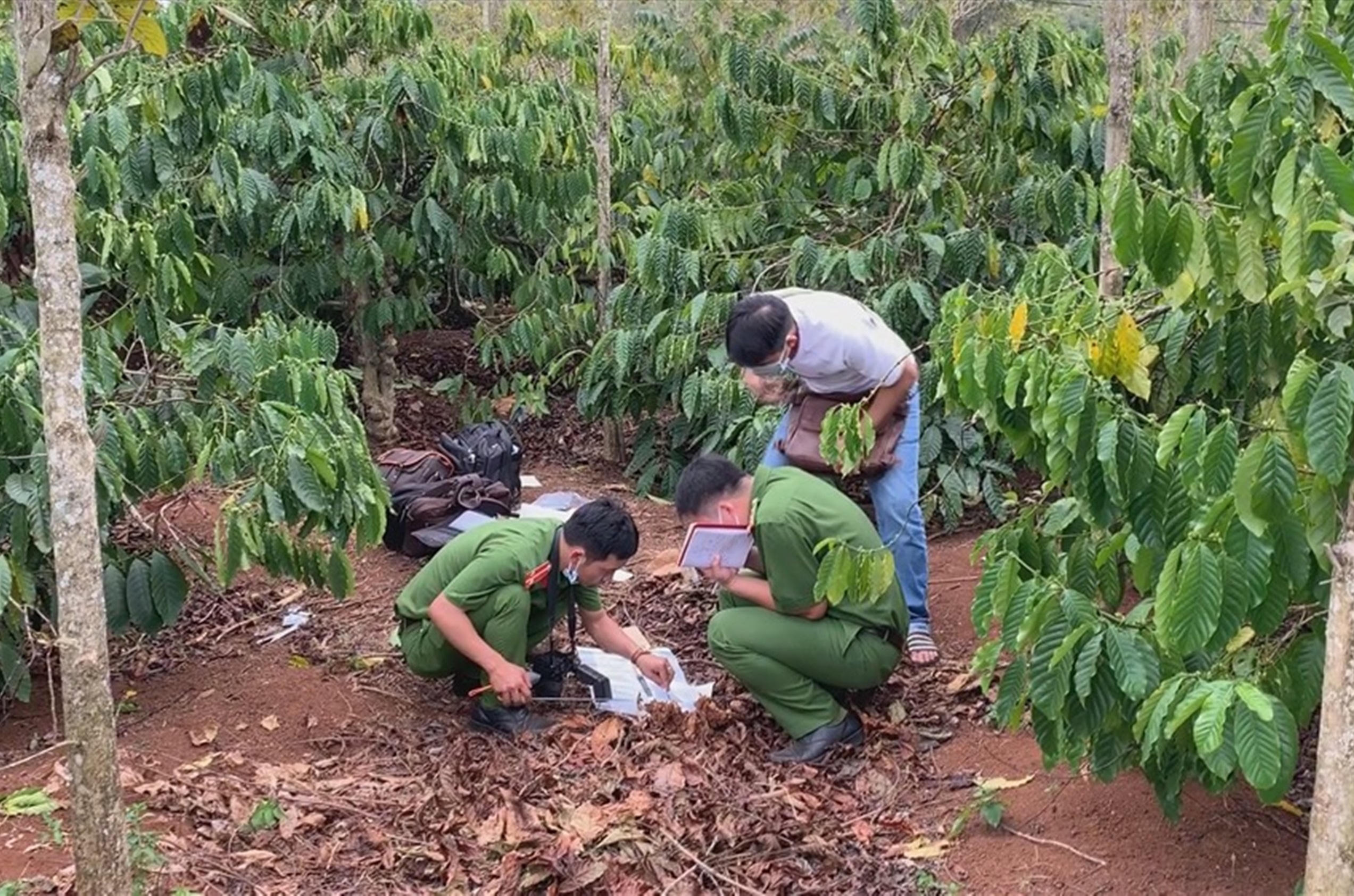 Trước đó, vào khoảng 8h30 ngày 30/12, ông Nguyễn Quang Tân (cha ruột của Hùng) đến thăm rẫy cà phê của mình ở thôn 22 (xã Hòa Khánh) thì phát hiện một thi thể phụ nữ đang phân nên trình báo cơ quan công an.