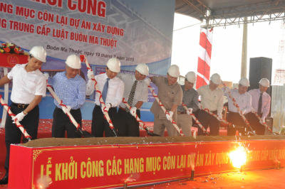 Cũng trong chuyến công tác tại tỉnh Đắk Lắk, đoàn công tác Bộ Tư pháp do Bộ trưởng Hà Hùng Cường dẫn đầu đã đến thăm và dự Lễ khởi công xây dựng Trường Trung cấp Luật Buôn Ma Thuột giai đoạn 2.