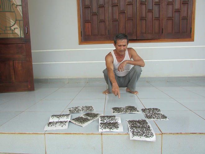 Tại thôn 6 xã Ea Tiêu, ông Nguyễn Tất Sang (SN 1968) nghe nói có phóng viên đến tìm hiểu tình trạng ô nhiễm trên địa bàn cũng lật đật bỏ dở công việc ngoài vườn, chạy vào cầm lấy hai miếng dán ruồi đặt trên bàn ra “tố cáo”: