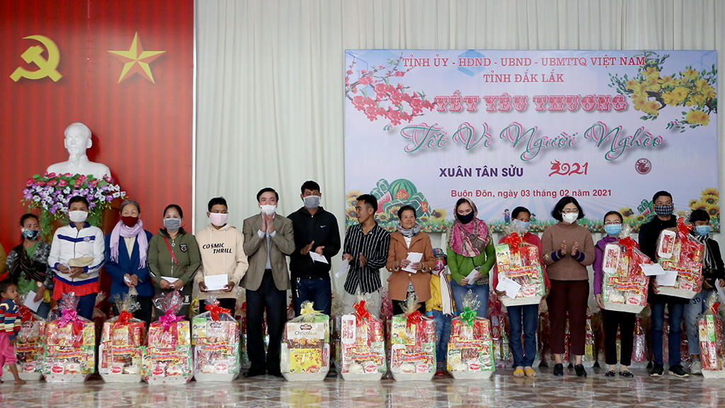 Sau khi phát động phong trào “Tết yêu thương - Tết vì người nghèo”, đến nay, Tỉnh Đắk Lắk đã vận động các cơ quan, đơn vị, doanh nghiệp, các nhà hảo tâm trong và ngoài tỉnh hỗ trợ được hơn 4 tỷ đồng để chăm lo, tặng quà cho hơn 8.000 hộ nghèo trên địa bàn toàn tỉnh nhân dịp Tết Nguyên đán Tân Sửu 2021.