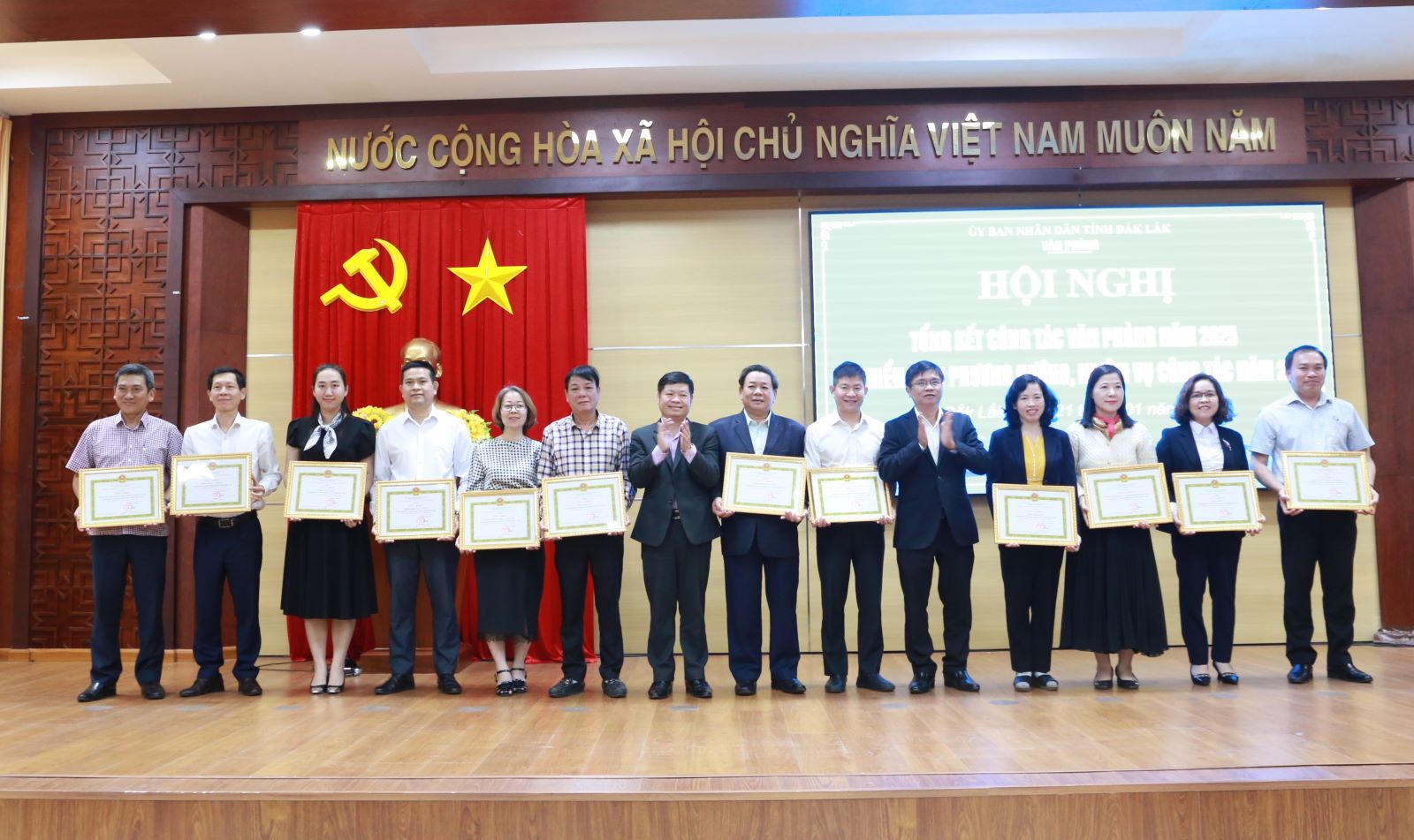 Ngoài ra, 12 tập thể cùng nhiều cá nhân có thành tích trong công tác năm 2025 cũng được Lãnh đạo Văn phòng UBND tỉnh Đắk Lắk trao tặng Giấy khen và Danh hiệu “Chiến sĩ thi đua cơ sở”.