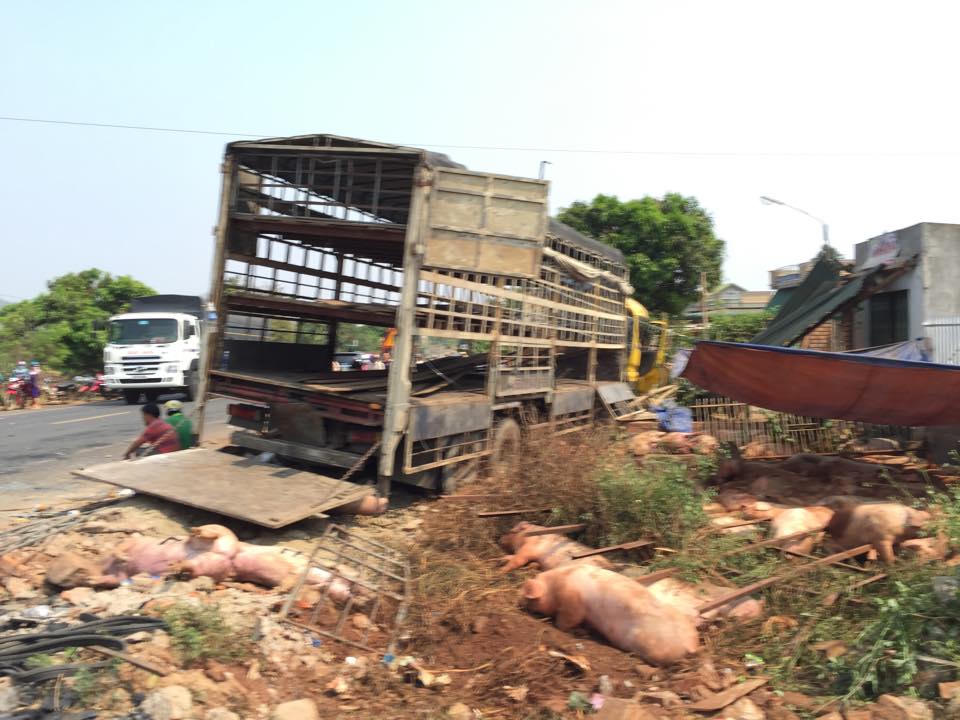 (PLO) - Vụ tai nạn xảy ra nửa đêm về sáng giữa xe tải chở gần 100 con heo và 1 xe khách đi từ hẻm ra Quốc lộ 14.