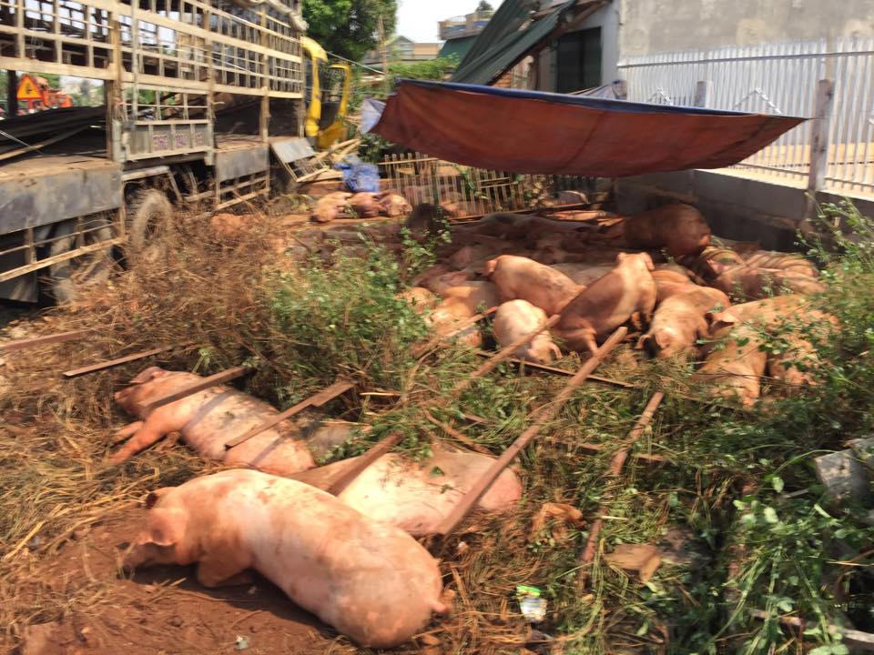 Hậu quả khiến 1 người tử vong, 4 người bị thương, 1 xe khách và 1 xe tải hư hại nặng và gần 100 con heo chết.