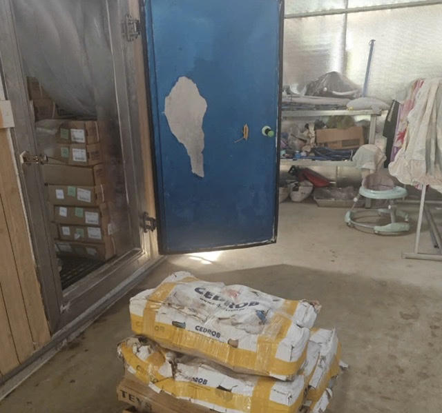 Tại đây, lực lượng chức năng phát hiện 2 kho lạnh chứa 1.008kg hàng hóa là thực phẩm đông lạnh, gồm các loại chân gà, mỡ heo, xương bò, xương heo, tim heo, bắp bò... được đựng trong các thùng cát tông có chữ nước ngoài và một số bao bì không có nhãn mác thể hiện thông tin về nơi xuất xứ.