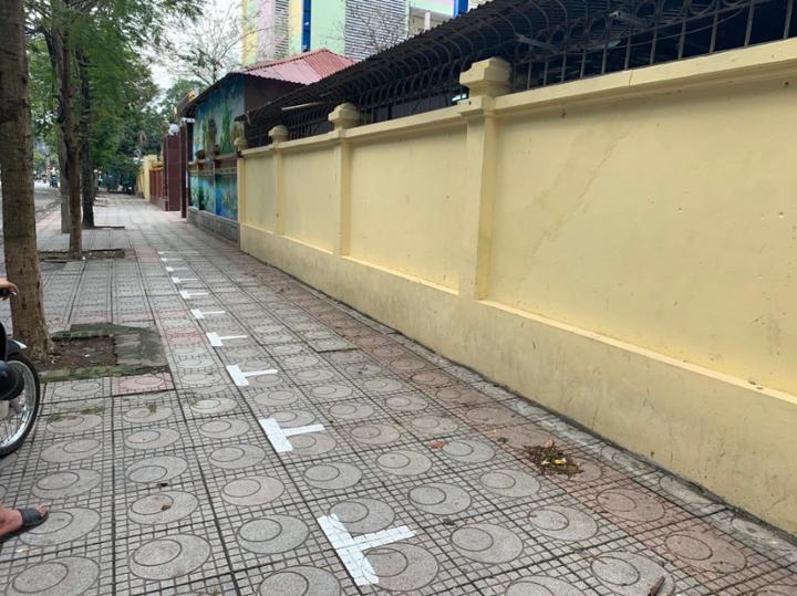 Dưới đây là 1 số hình ảnh về công tác triển khai Sơn kẻ vạch sắp xếp chỗ dừng, đỗ xe tạm thời cho phụ huynh trong thời gian đưa, đón học sinh trên địa bàn quận Ba Đình: