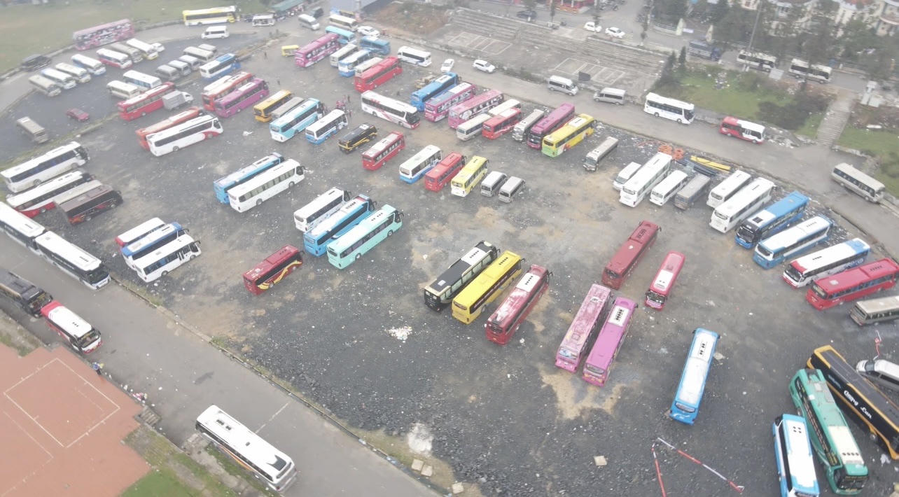 Lượng phương tiện vận tải hành khách đến Sa Pa rất đông |