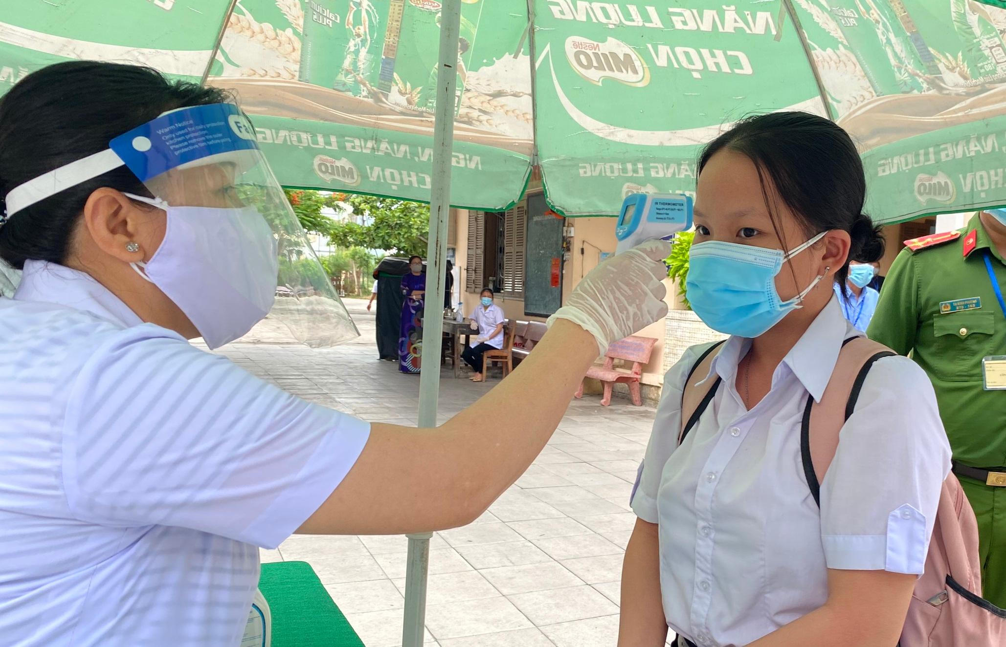 Công tác kiểm soát, đo thân nhiệt cho thí sinh diễn ra nghiêm ngặt, đúng quy định. |