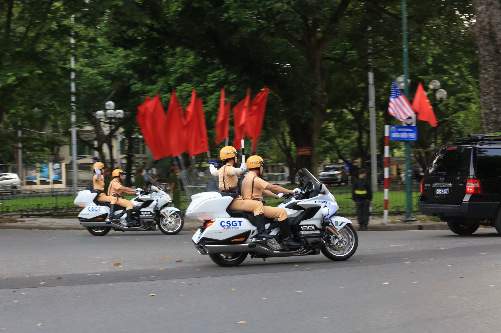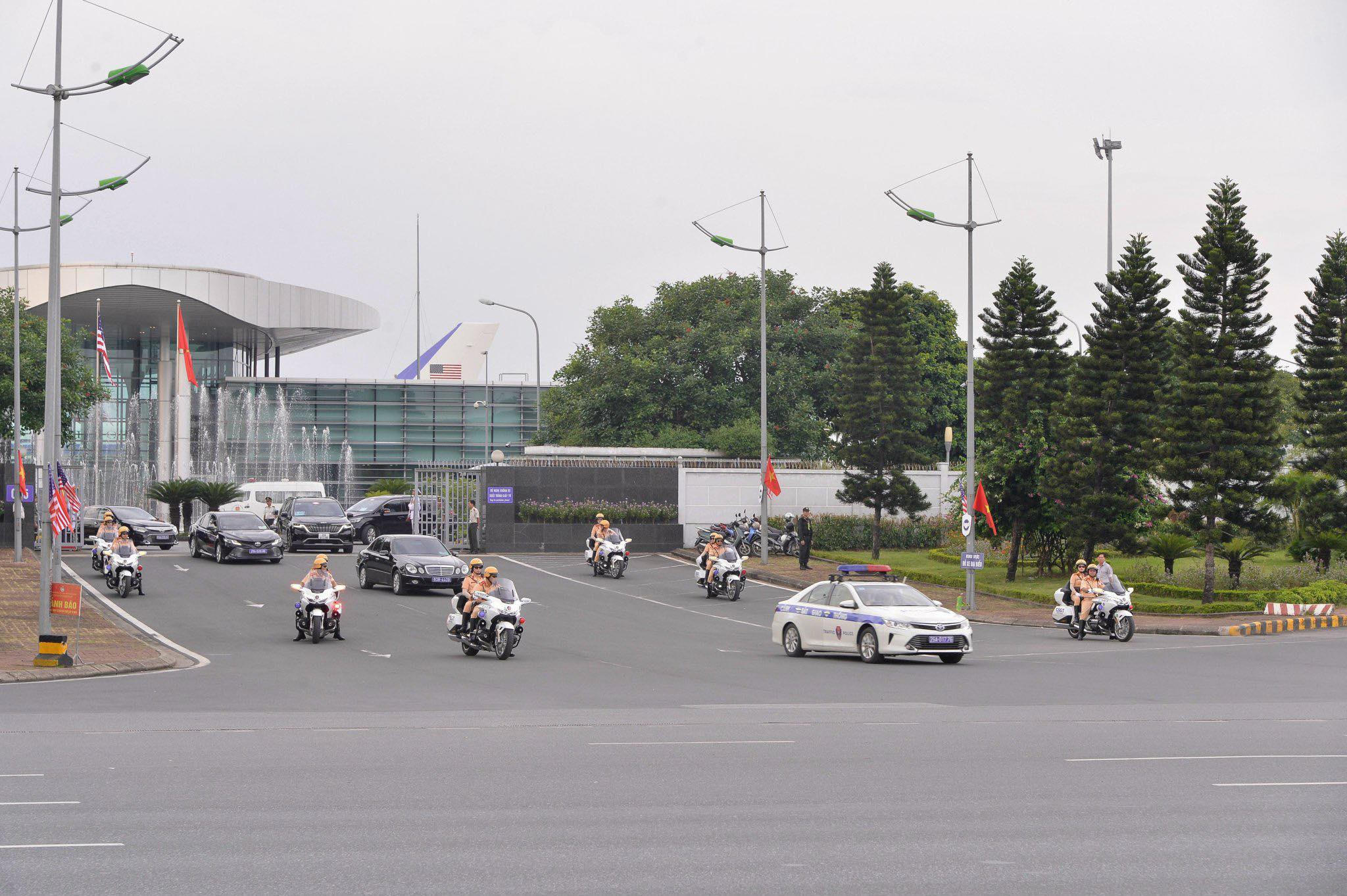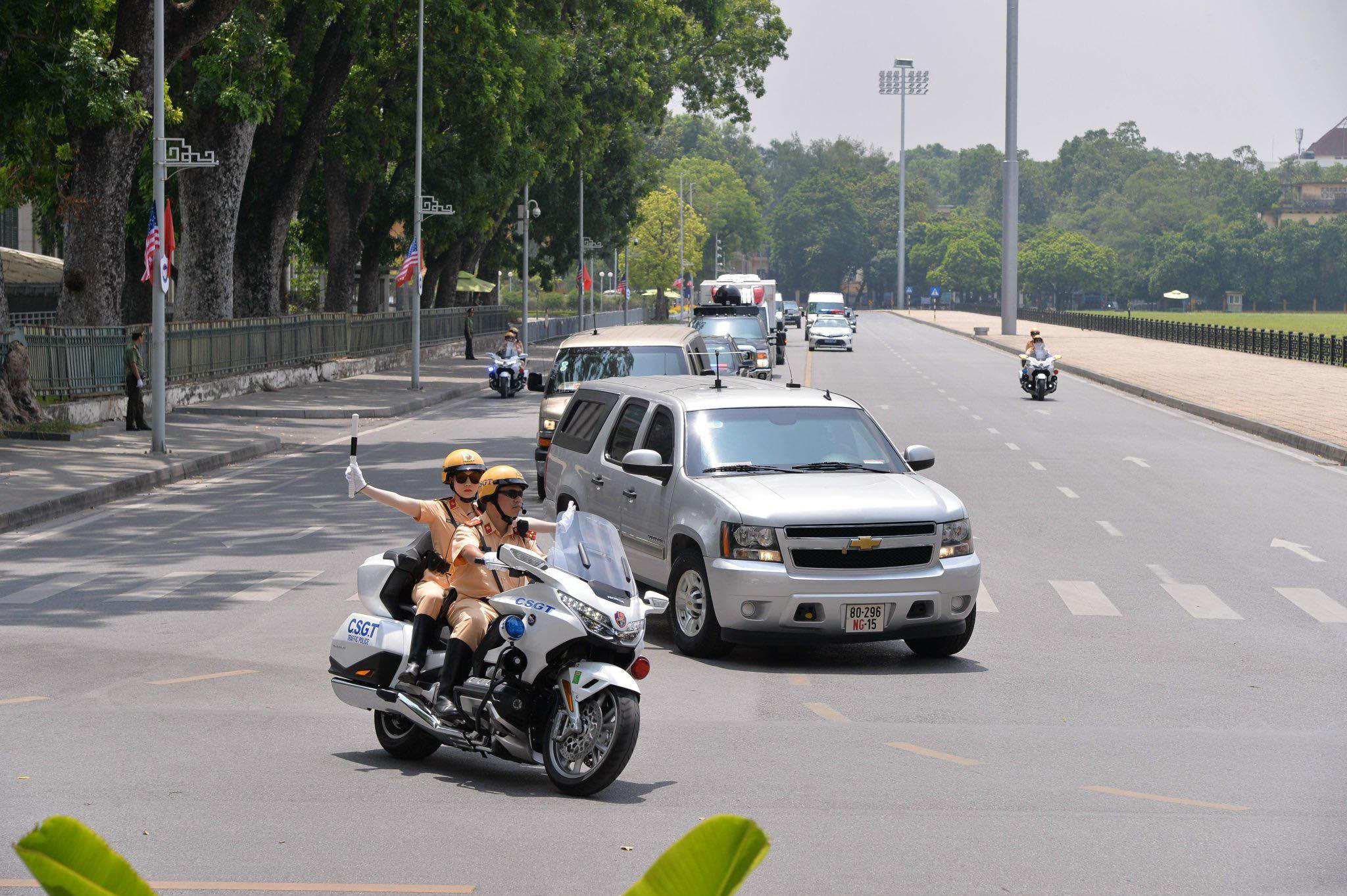 Theo Trung tá Nguyễn Đăng Tiến, Đội trưởng Đội Tuần tra dẫn đoàn, Phòng Cảnh sát giao thông (Công an thành phố Hà Nội) cho biết: Lộ trình của đoàn Tổng thống Hoa Kỳ đi qua nhiều tuyến phố luôn được bảo đảm an toàn tuyệt đối. Tính đến chiều cùng ngày, đơn vị đã hoàn thành nhiệm vụ tiễn đoàn ra chân máy bay, kết thúc 2 ngày ghé thăm Việt Nam.