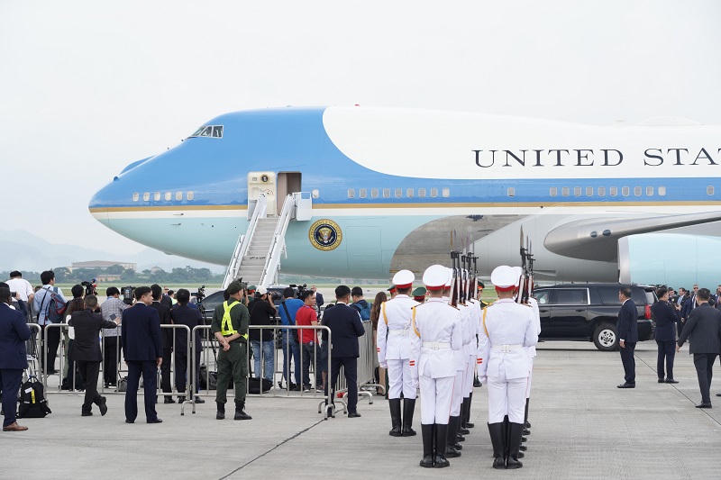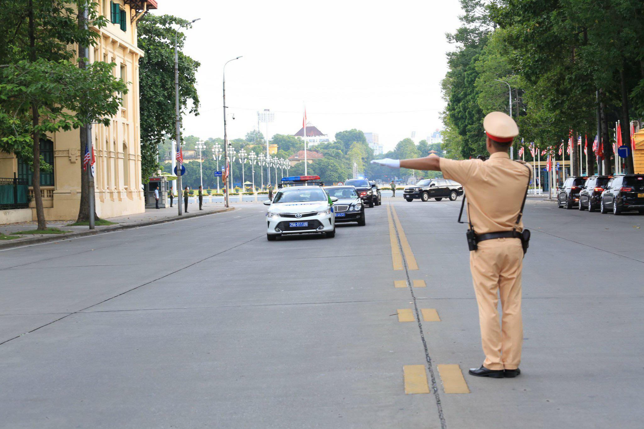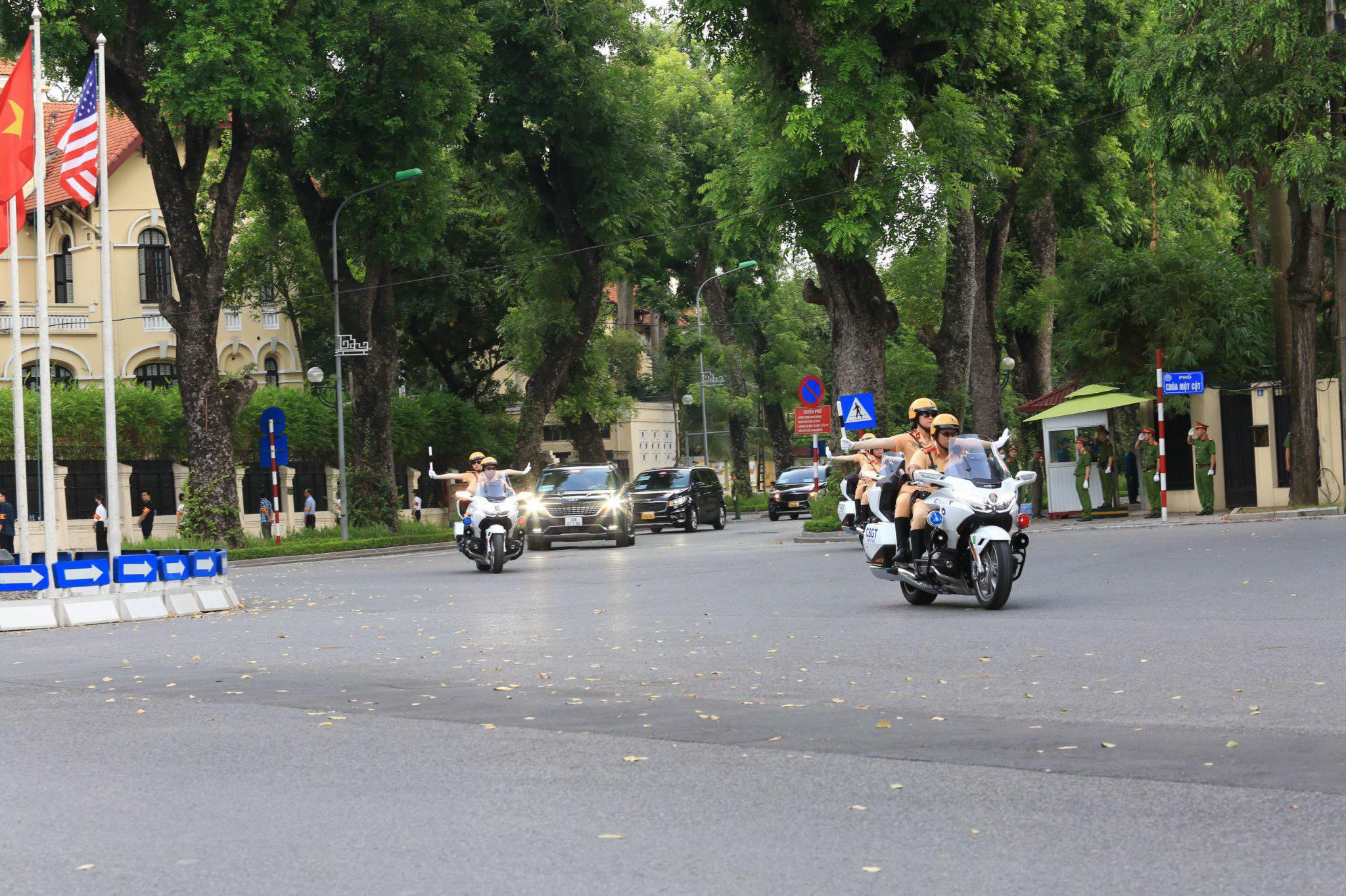 Theo Trung tá Nguyễn Đăng Tiến, Đội trưởng Đội Tuần tra dẫn đoàn, Phòng Cảnh sát giao thông (Công an thành phố Hà Nội) cho biết: Lộ trình của đoàn Tổng thống Hoa Kỳ đi qua nhiều tuyến phố luôn được bảo đảm an toàn tuyệt đối. Tính đến chiều cùng ngày, đơn vị đã hoàn thành nhiệm vụ tiễn đoàn ra chân máy bay, kết thúc 2 ngày ghé thăm Việt Nam.