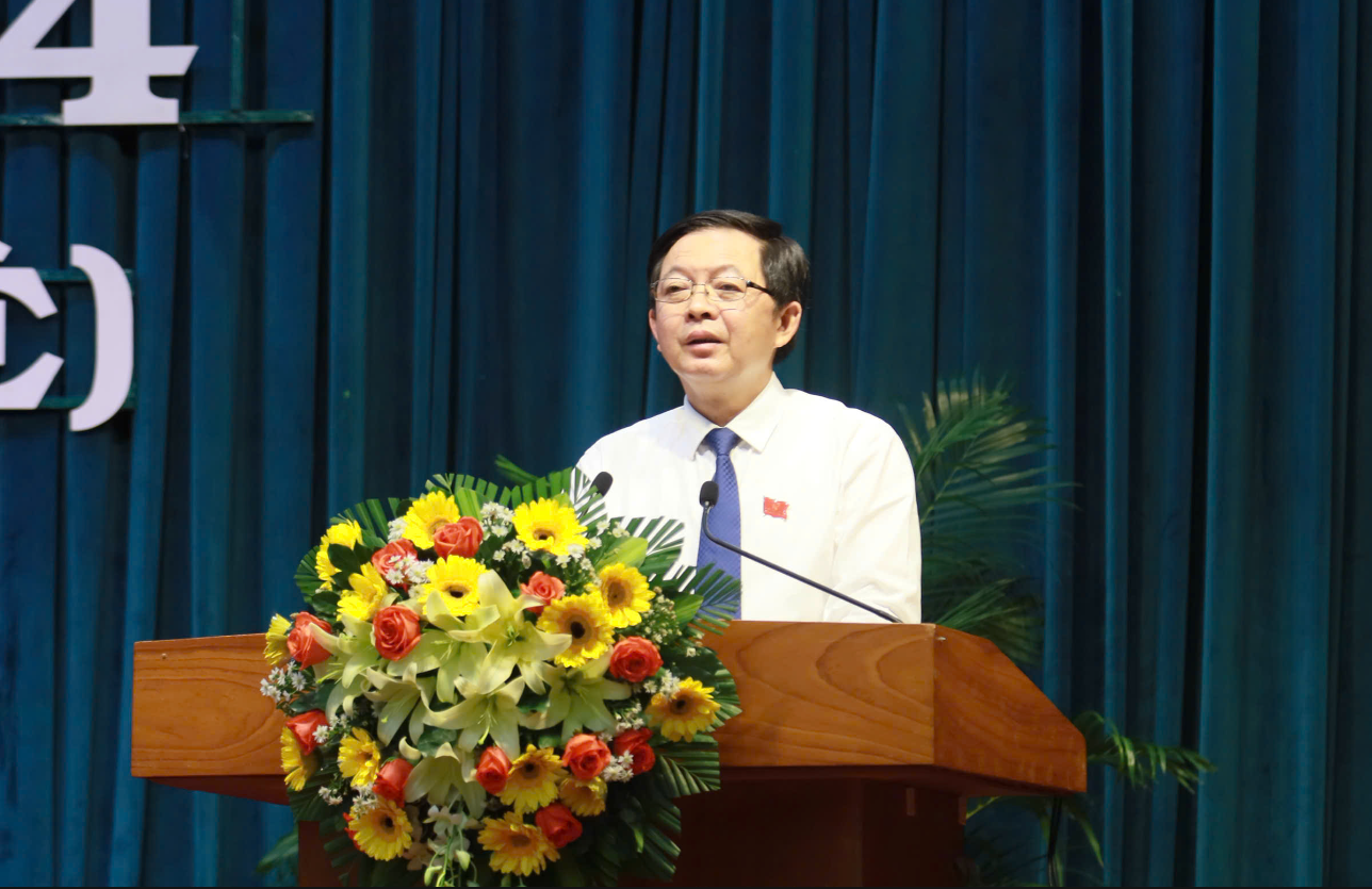 Ông Hồ Quốc Dũng - Bí thư Tỉnh ủy, Chủ tịch HĐND tỉnh Bình Định phát biểu tại Kỳ họp |