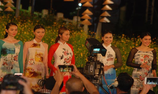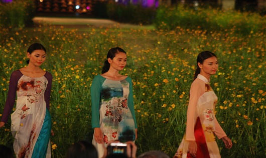 Tối 30/4, tại cầu Tràng Tiền (TP. Huế) diễn ra Lễ hội áo dài với chủ đề "Hội họa Huế với áo dài", đây như là một cuộc "triển lãm tranh" sống động và hấp dẫn, với muôn sắc màu, dáng vẻ của các tác phẩm hội họa Huế cách điệu trên mỗi tà áo dài.