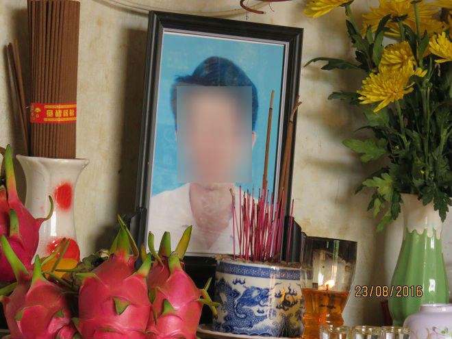 Chị Qúy lau nhanh hàng nước mắt nói: “Buổi sáng hôm chồng bị sát hại lúc đấy khoảng 5 giờ sáng. Tôi đang ngồi thiền thì có người đến nhà báo anh Thụ bị đâm chết ở trên rẫy, nghe xong tôi cũng gục ngã luôn. Đứa con trai lớn nghe thấy vậy liền lấy xe chạy lên rẫy ngay.