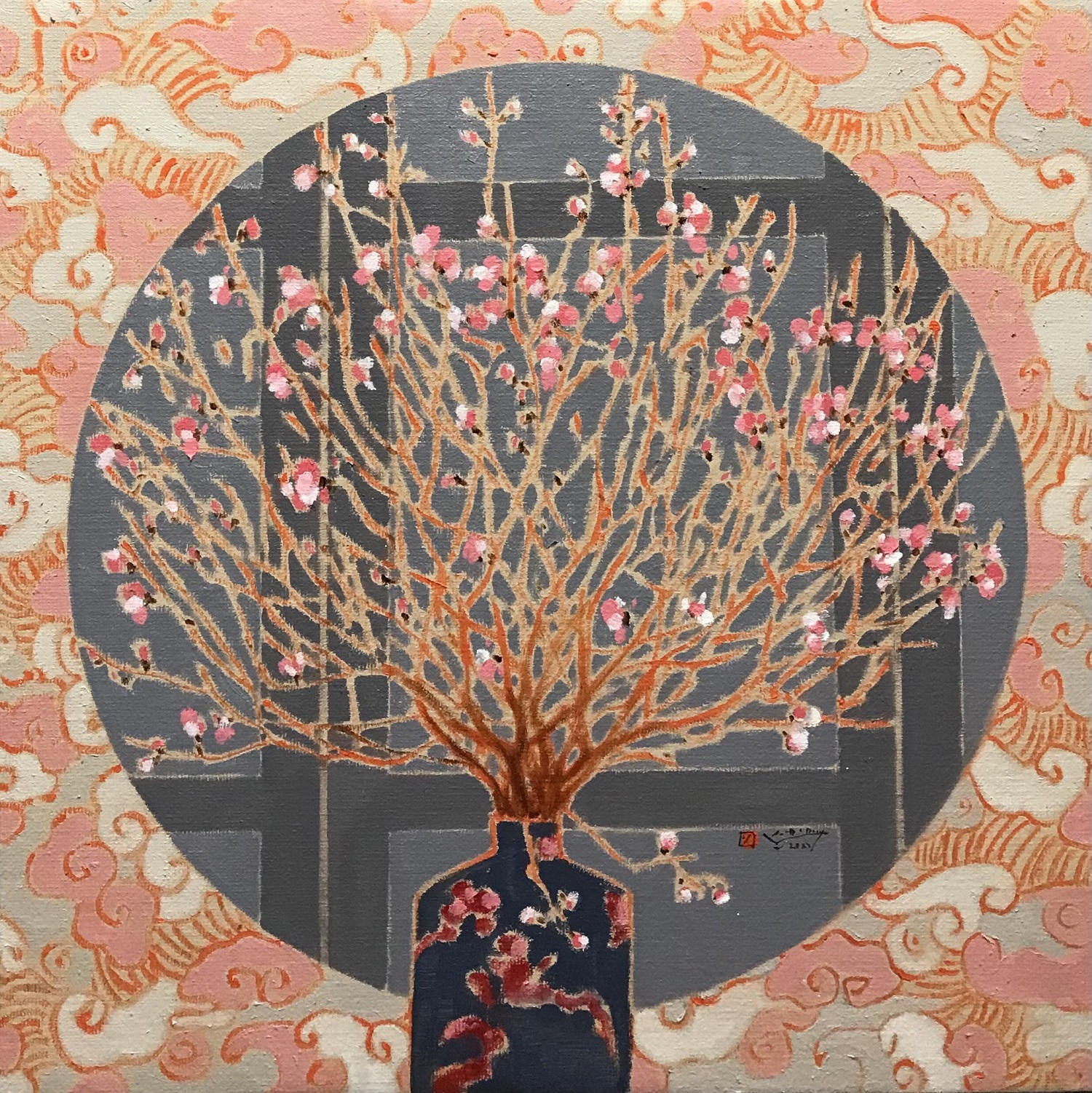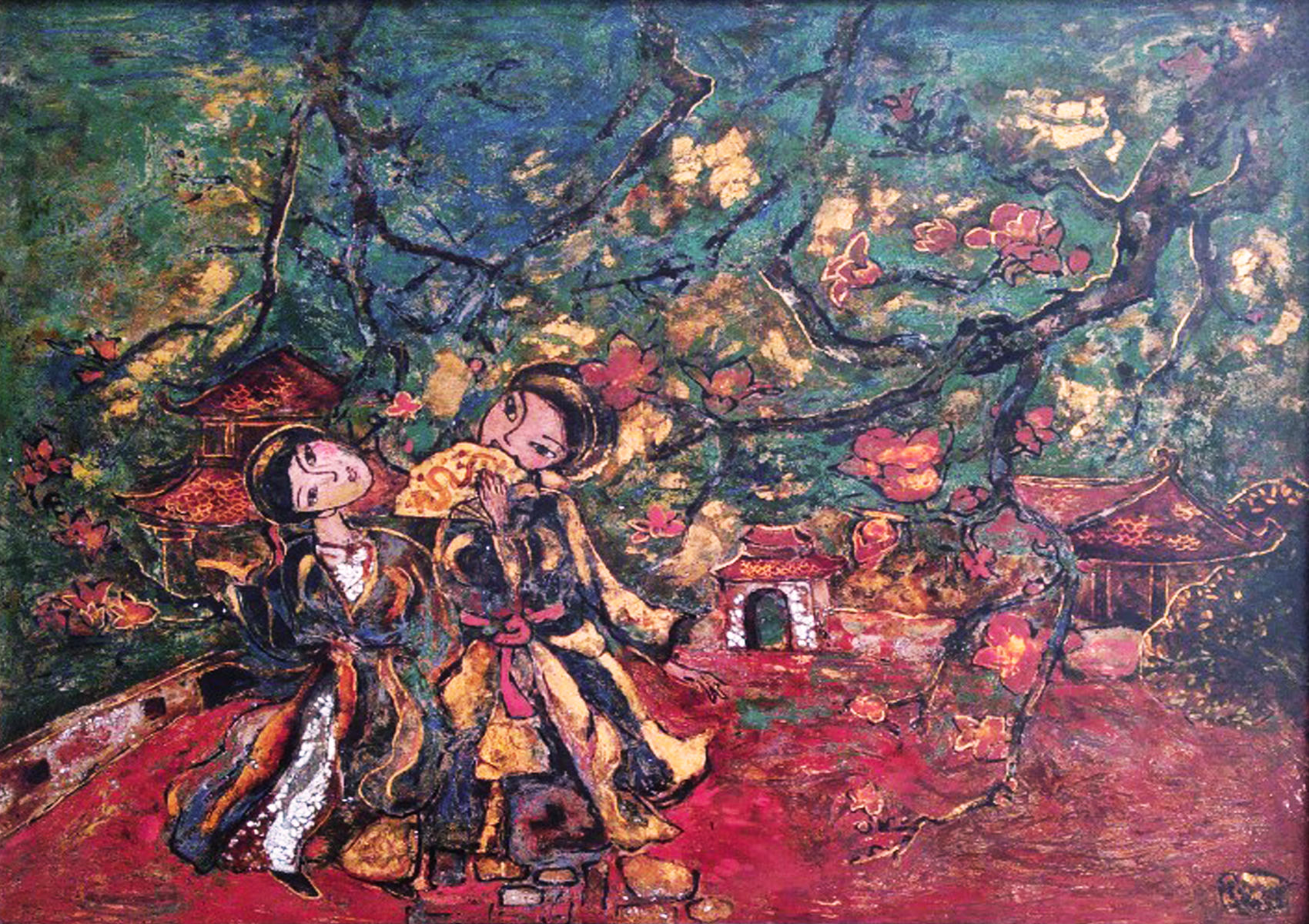 Đào xưa - Tác giả Khổng Đỗ Duy, chất liệu sơn dầu. |