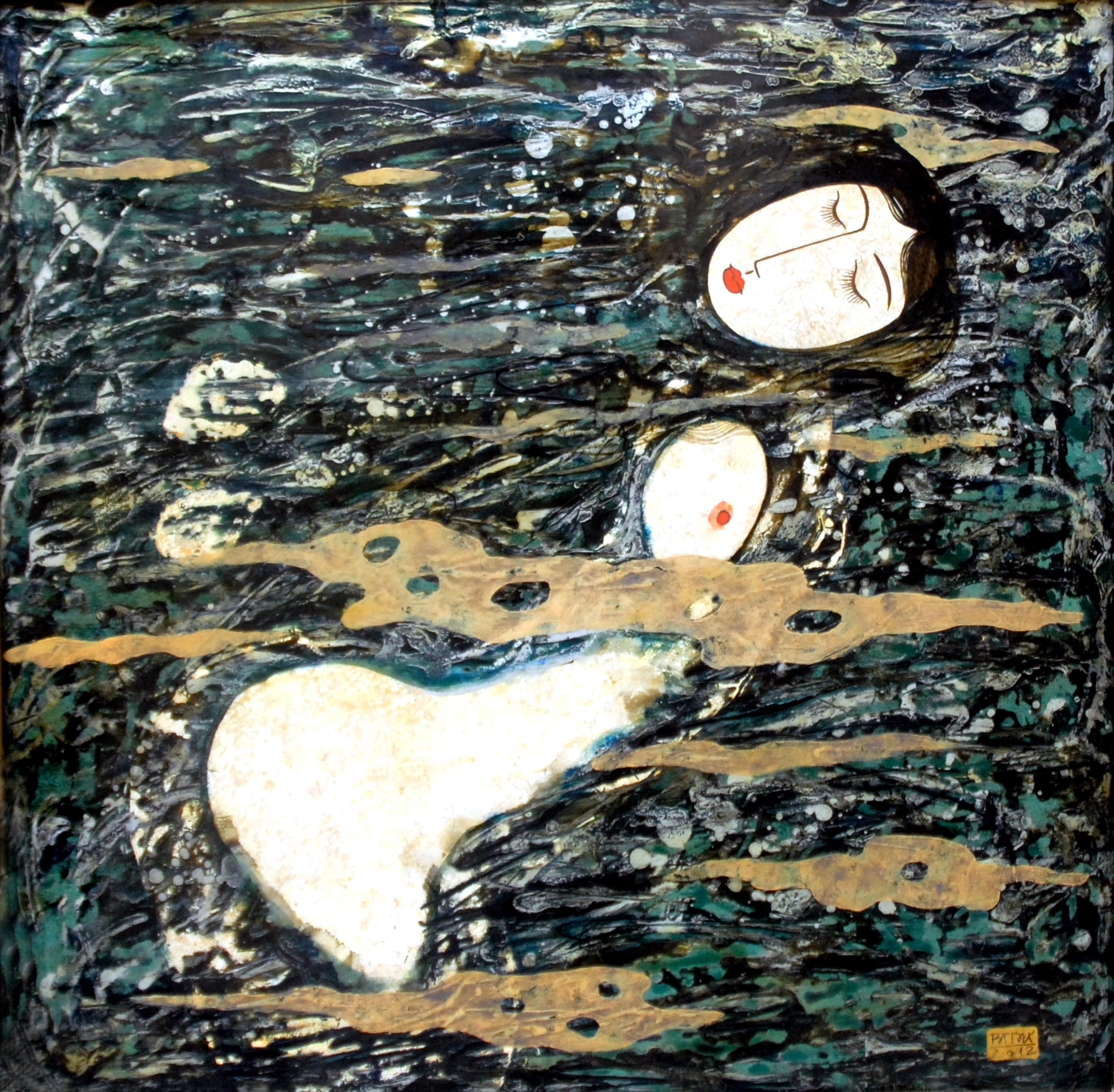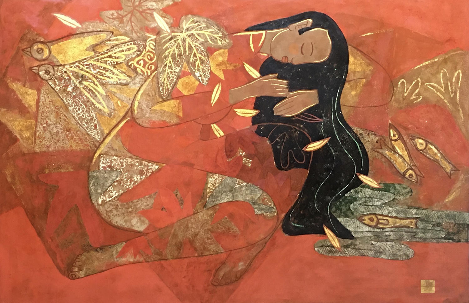 Suối tóc - Tác giả Nguyễn Hải Nam, chất liệu sơn mài. |