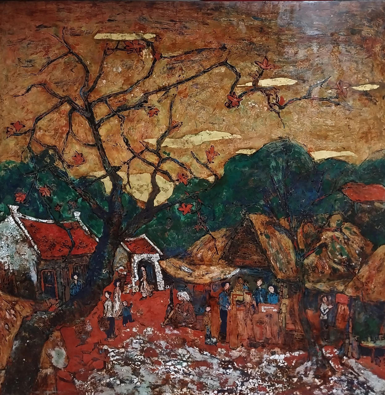 Chiều trên Phủ - Tác giả Phạm Hồng Phương, chất liệu sơn mài. |
