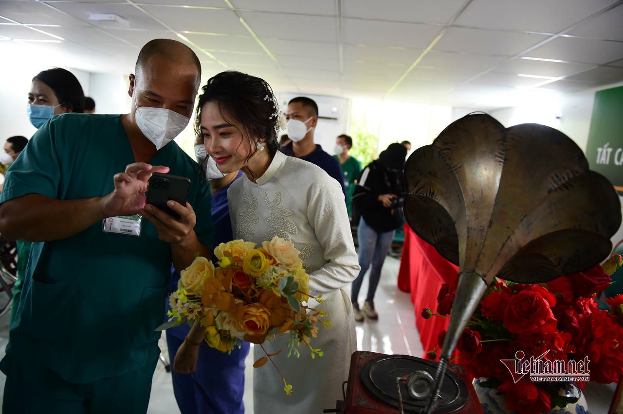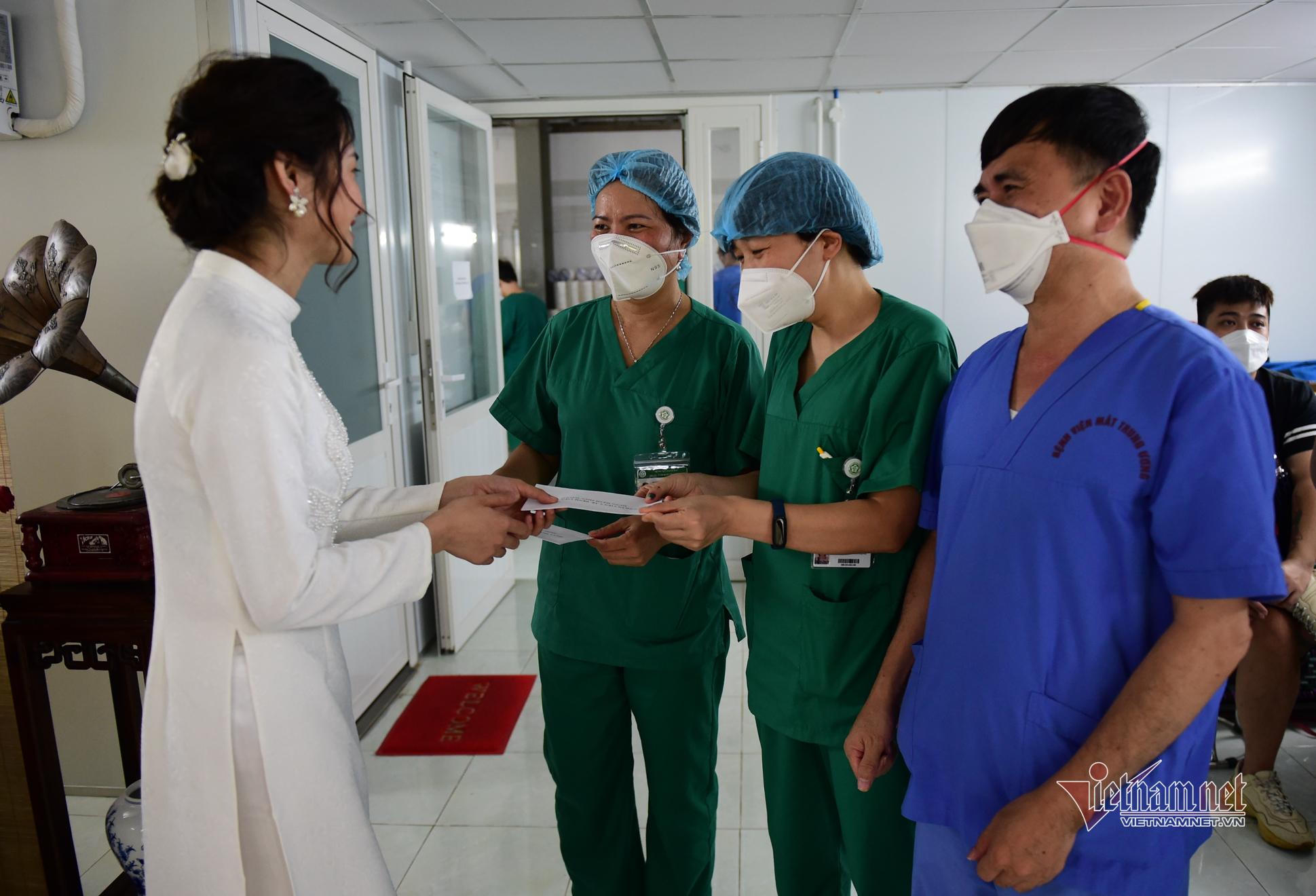 Khi biết tin, các bác sĩ ở Bệnh viện Dã chiến số 16 quyết định làm một lễ cưới giản dị, ấm áp, trang trọng cho cô dâu Ngọc Diệp. Mọi thứ chuẩn bị gấp rút chỉ trong vòng 2 ngày.
