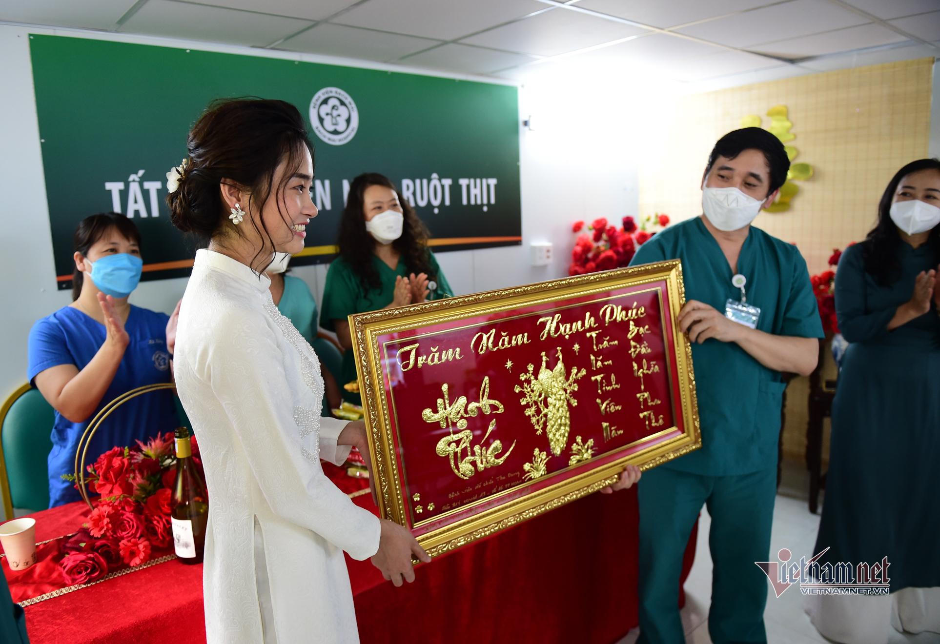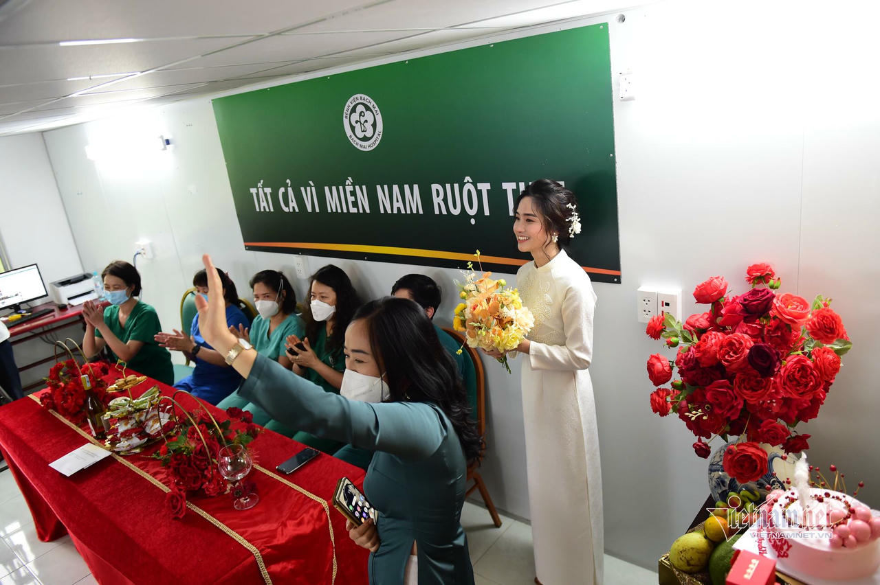 Đám cưới được tổ chức ngay trong phòng hành chính của Bệnh viện Dã chiến số 16, khi cô dâu cách xa chú rể hơn 1.000km.