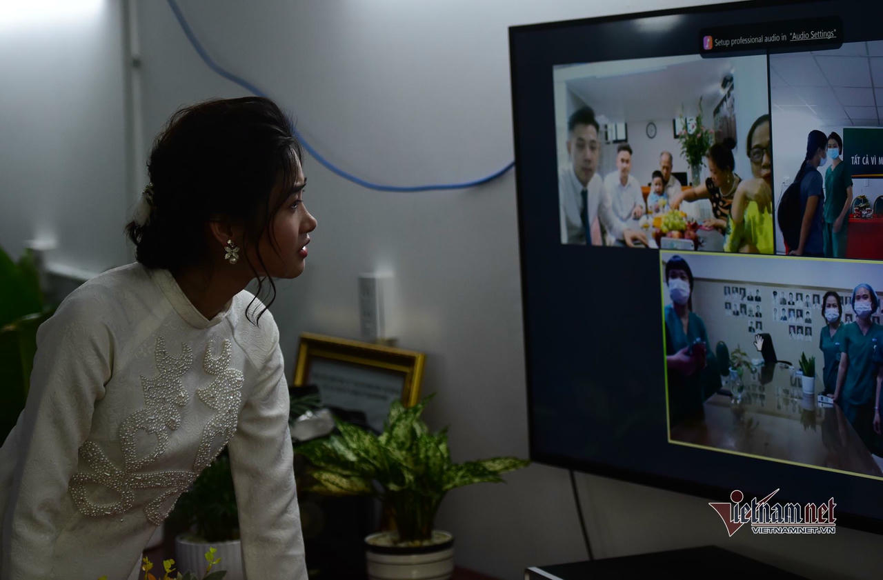 Gia đình hai bên quyết định tổ chức đám cưới online cho hai con trong hoàn cảnh đặc biệt này. Cô dâu ở TP HCM, nhà trai ở Hà Nội, nhà gái ở Nam Định.