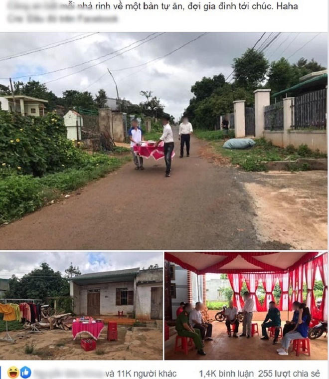 Trên mạng xã hội mới chia sẻ hình ảnh về một đám cưới được cho là diễn ra ở thị trấn Phước An, huyện Krông Pắk, tỉnh Đắk Lắk. Theo thông tin chia sẻ, do lệnh cách ly xã hội quá gấp nên gia đình không kịp báo dời lịch cưới.