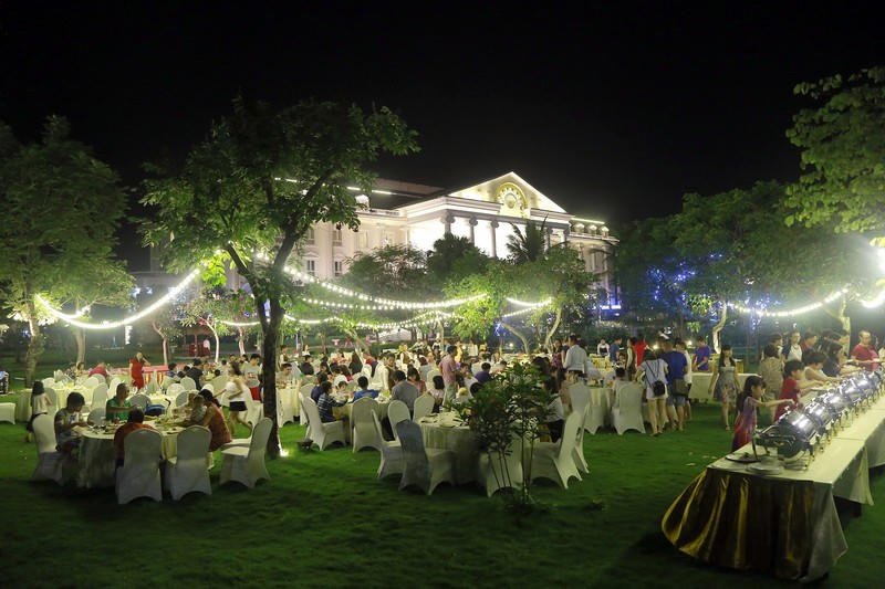 Tiệc buffet vườn độc đáo đưa du khách tới với phong cách ẩm thực đa dạng thông qua các chủ đề phong phú. Giữa khoảng sân vườn được trang hoàng bởi ánh đèn, ánh nến lung linh, cả gia đình sẽ thưởng thức bữa tối trong không gian xanh đẹp như mơ với cỏ cây hoa lá bao bọc. Một bữa tối lãng mạn khó quên.