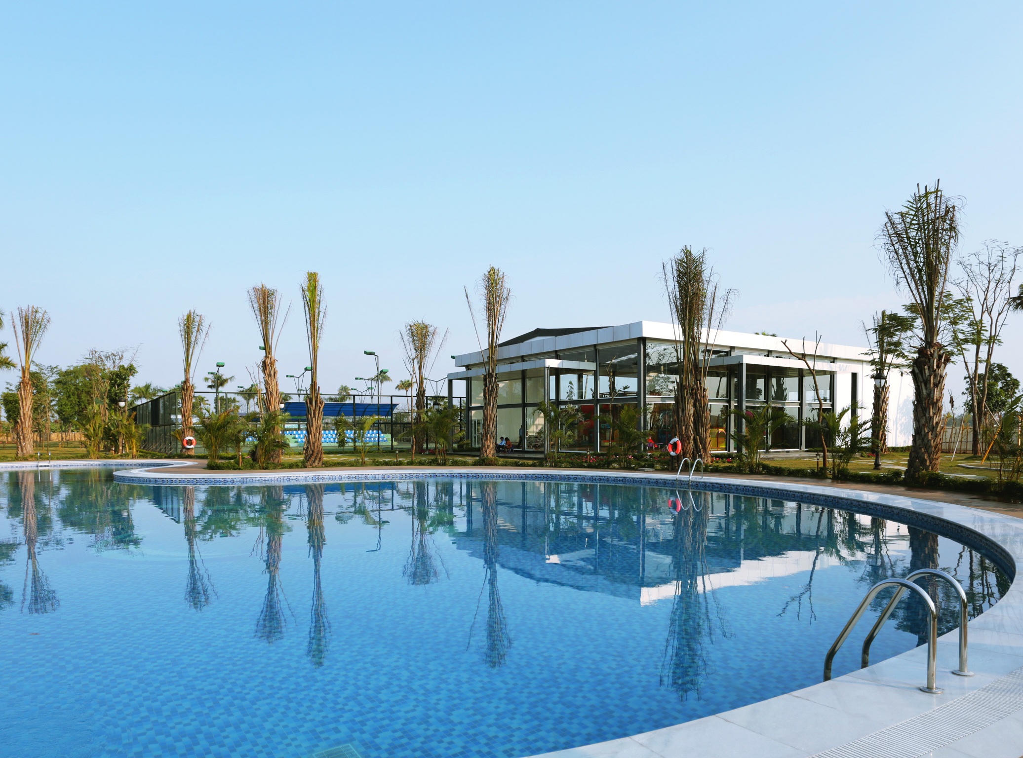 Trong khi đó, bể bơi ngoài trời tọa lạc giữa không gian sân vườn xanh mát, vừa là nơi “hạ nhiệt”, vừa là nơi lưu giữ những bức ảnh selfie “lung linh” cho những tín đồ bikini.