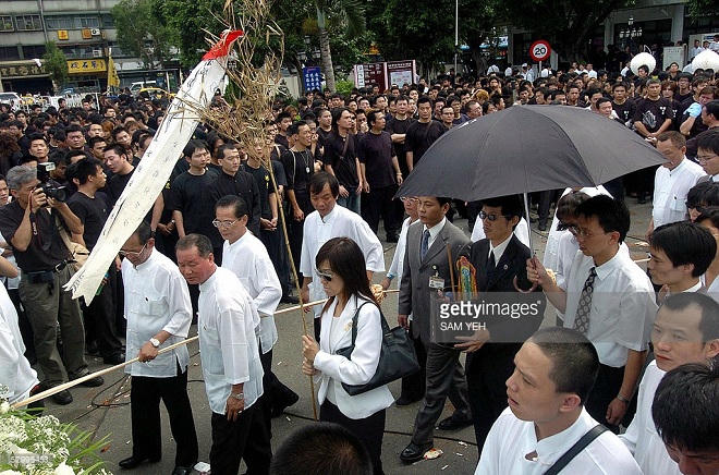 Đám tang bao gồm một lễ diễu hành kéo dài, trong đó các thành viên trong các băng nhóm thuộc thế giới ngầm – tất cả đều mặc đồ đen – chia thành 3 khối đã đưa tro cốt của Hsu đi suốt 10km từ Đài Bắc tới một nghĩa trang nằm ở ngoại ô thành phố này.