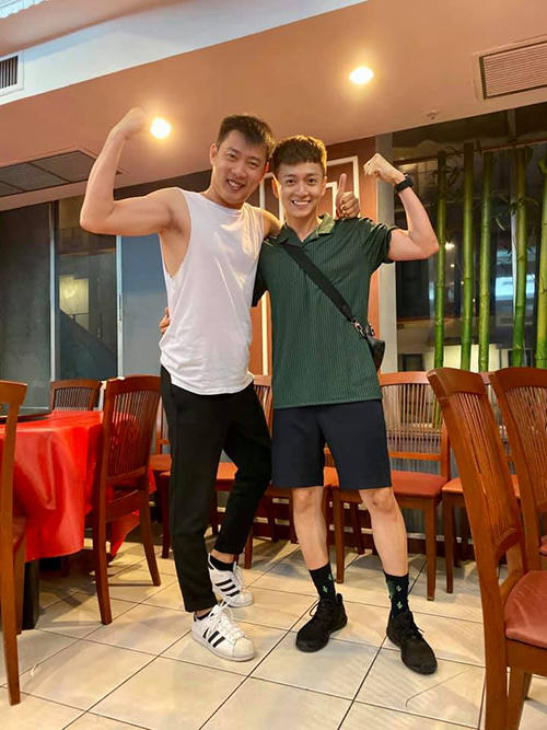 MC Ốc Thanh Vân đăng ảnh chồng chụp cùng Ngô Kiến Huy và than thở: "Một bên là chồng Trí Rùa. Một bên là con trai Lê Thành Dương. Con mình nên đương nhiên gọi mình là má. Nhưng con mình gọi chồng mình là anh xưng em. Gia đình kỳ cục. Tập gym chung. Rồi rủ nhau đi Thái chung rồi đó. Con trai lớn à, bầy em nhỏ của con nheo nhóc ở nhà đây nè".