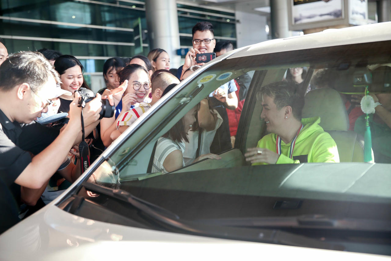 (PLO) - Đàm Vĩnh Hưng đã về đến sân bay Tân Sơn Nhất sau chuyến đi châu Âu dự lễ trao giải MTV EMA 2017. Rất đông người hâm mộ đã có mặt trước đó 2 giờ để chờ đợi nam ca sĩ. Họ đã chuẩn bị chiếc huy chương vàng và chiếc cúp đặc biệt có in dòng chữ “Giải thưởng lớn nhất của fans dành cho Mr. Đàm” để tặng giọng ca “Say tình”.