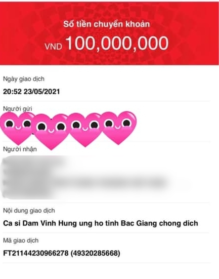 Trước đó, khi nắm được thông tin các bệnh viện dã chiến ở Bắc Giang, Bắc Ninh thiếu giường bệnh, Đàm Vĩnh Hưng đã đưa ra quyết định ủng hộ tiền để hỗ trợ bà con ở khu vực này: "Hưng xin mọi người cho Hưng tự quyết số tiền 160 triệu đồng đã kêu gọi cho một cháu bé bị phỏng nhưng bố mẹ bé xin không nhận nữa. Số tiền này sẽ đóng góp thẳng cho sở y tế tỉnh".