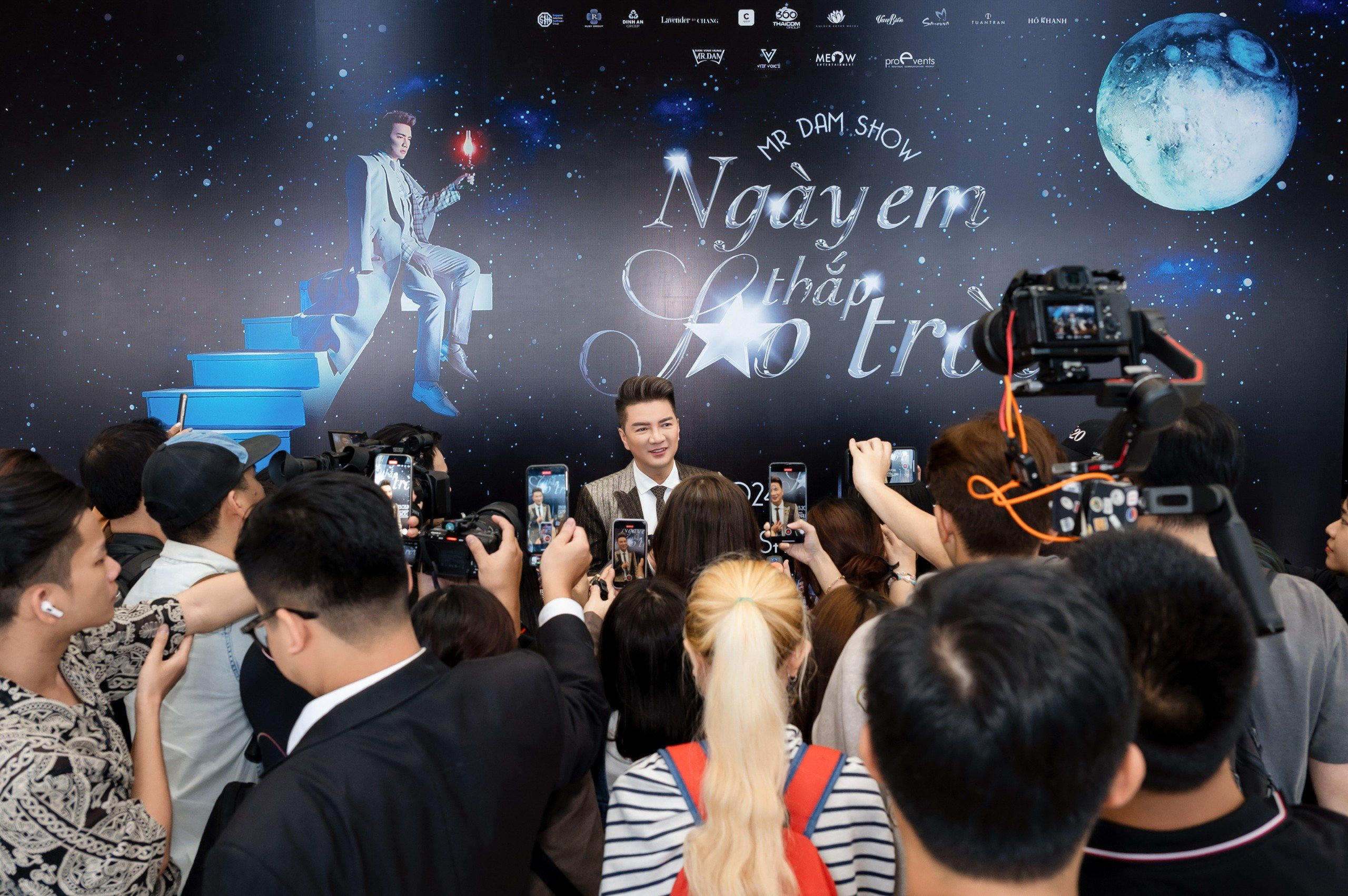 Chiều 17/1, Đàm Vĩnh Hưng tổ chức họp báo giới thiệu 2 liveshow mới sẽ diễn ra vào tháng 3 tại TP HCM và Hà Nội với tên gọi “Ngày em thắp sao trời”. Sự kiện quy tụ các khách mời như Dương Triệu Vũ, Uyên Linh, Trung Quân, đạo diễn Trần Vi Mỹ.