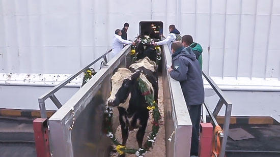 Đàn bò sữa đầu tiên nhập khẩu từ Mỹ của Tập đoàn TH cập cảng tại Nga