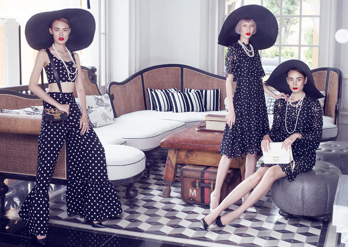 Chấm bi từng được NTK lăng-xê thành công trong hai bộ sưu tập trước đây và hiện tại vẫn giữ được sức hút nhờ sự biến tấu mới lạ. Đặc biệt, họa tiết này được in trên nền vải ren tạo hiệu ứng thị giác độc đáo.