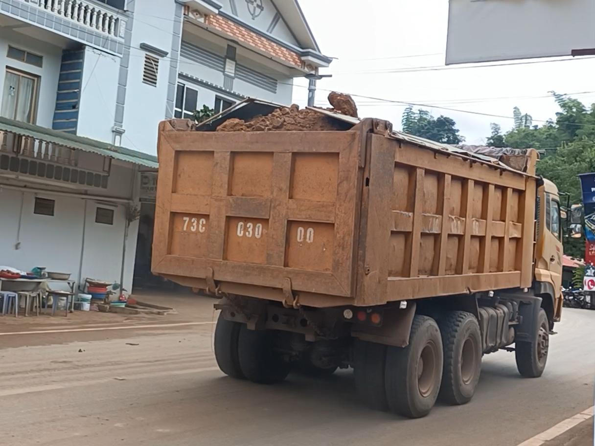 Xe chở đất có ngọn dấu hiệu quá tải. |