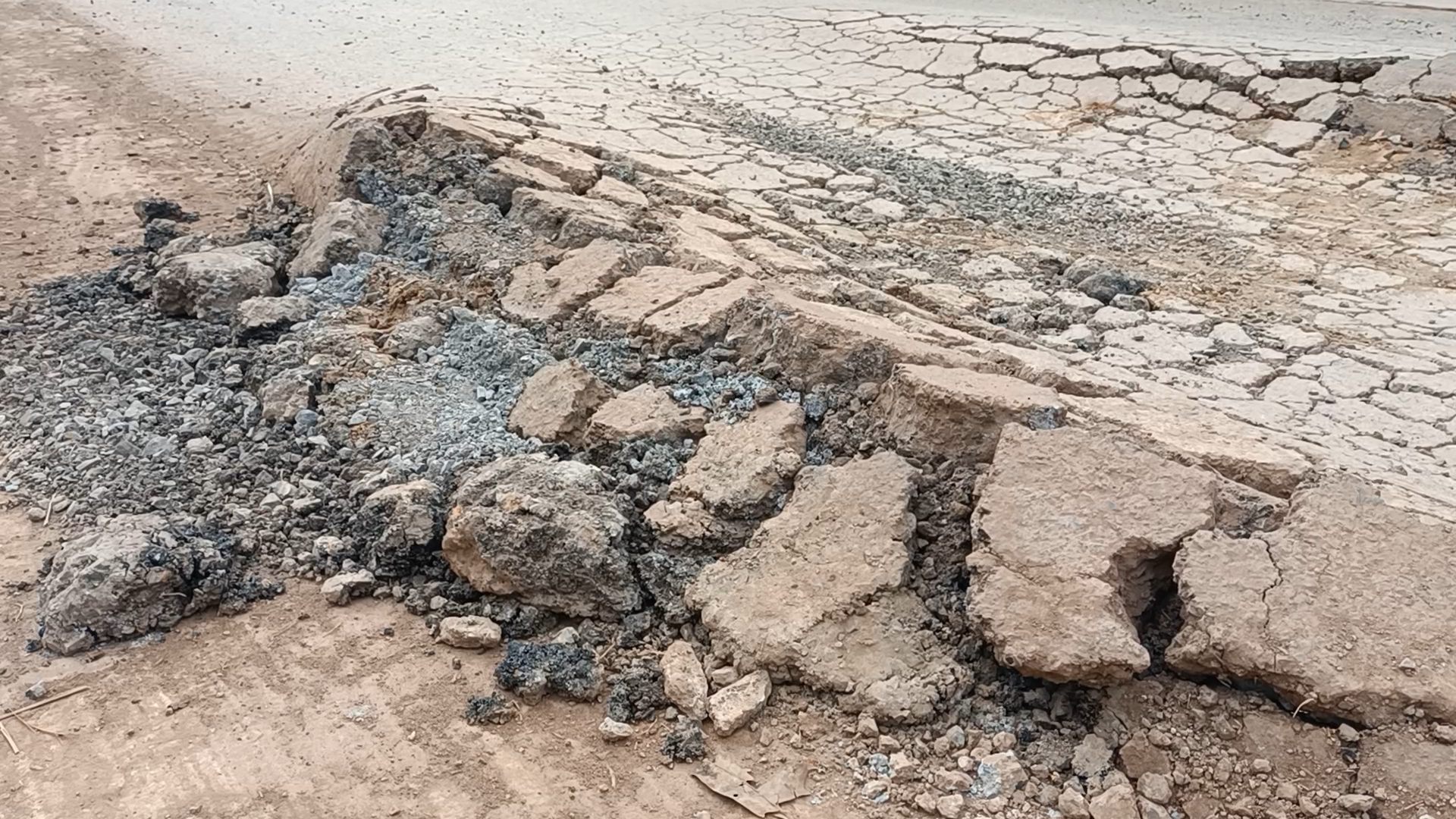 Tuyến đường mới nâng cấp đã bị hư hỏng nặng. |