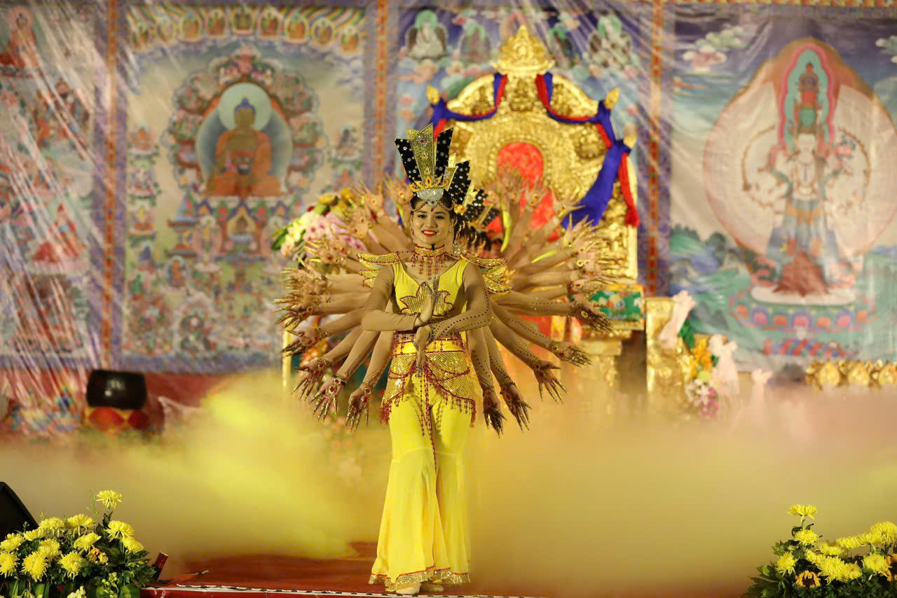 Nghệ sĩ trình diễn màn múa Phật Quan Âm thiên thủ thiên nhãn. |