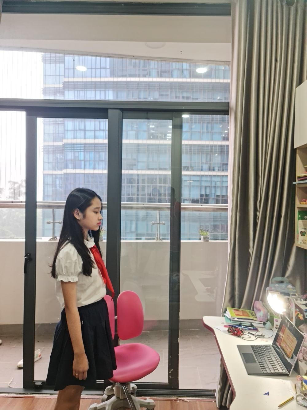 Nhã Phương bộc bạch trên trang cá nhân: "Bi mới đi khai giảng về mà gặp bạn học hơi hài hước nên cười hơi nhiều thôi chứ không có gì. Năm nay là một ngày khai giảng thật đặc biệt, chúc các em có 1 năm học mới tràn đầy năng lượng, nghe lời thầy cô, chăm ngoan học giỏi nghen".