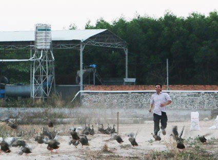 Anh Lâm Ngọc Nhâm với đàn vịt trời tại trang trại. |