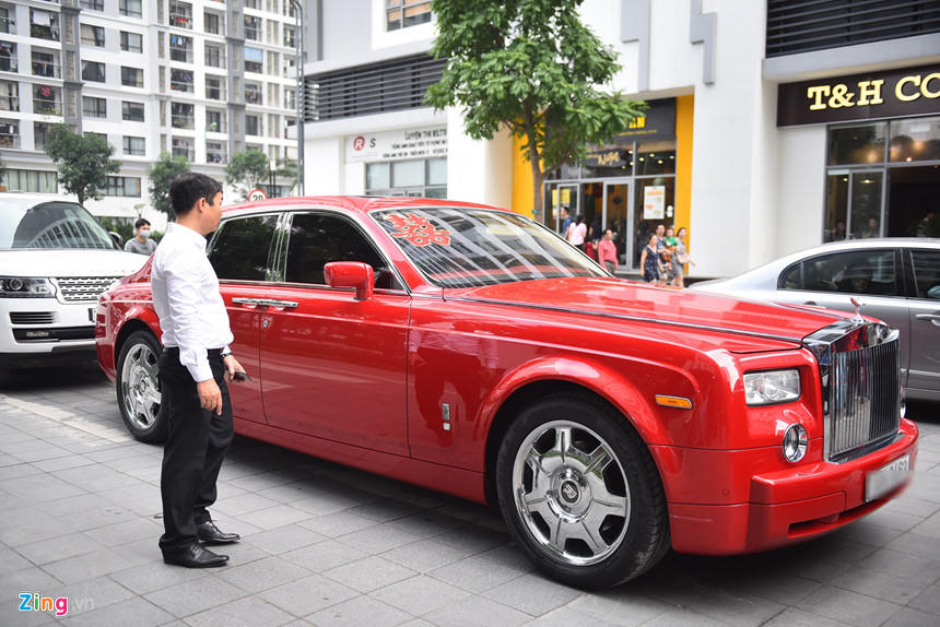 Chiếc Rolls Royce màu đỏ này từng xuất hiện trong lễ ăn hỏi trước đó của á hậu Thanh Tú.