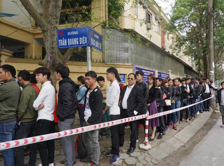 Từ ngày Mùng 6 Tết Nguyên đán (tức ngày 2/2/2017 DL) Phòng quản lý xuất nhập cảnh (PA72 – Công an Nghệ An) đã thông báo tiếp nhận giải quyết hồ sơ nhưng số người có nhu cầu làm hộ chiếu, đổi giấy thông hành vẫn nườm nượp đổ xô về thành phố Vinh. Nhưng đến ngày 6 và 7/2 thì số lượng công dân đến trụ sở Phòng PA72- Công an Nghệ An để làm thủ tục còn rất đông.