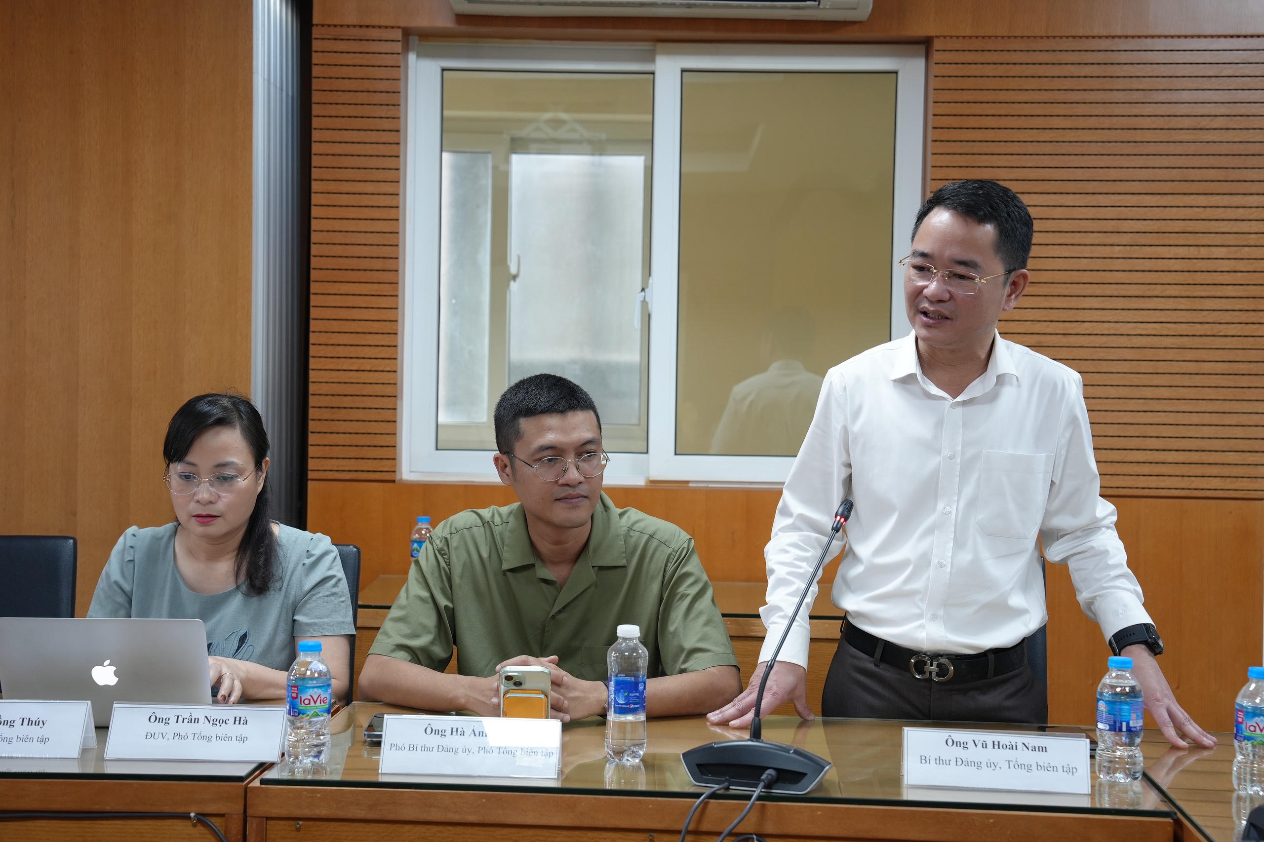 Đồng chí Vũ Hoài Nam, Bí thư Đảng ủy, Tổng biên tập Báo PLVN phát biểu. |