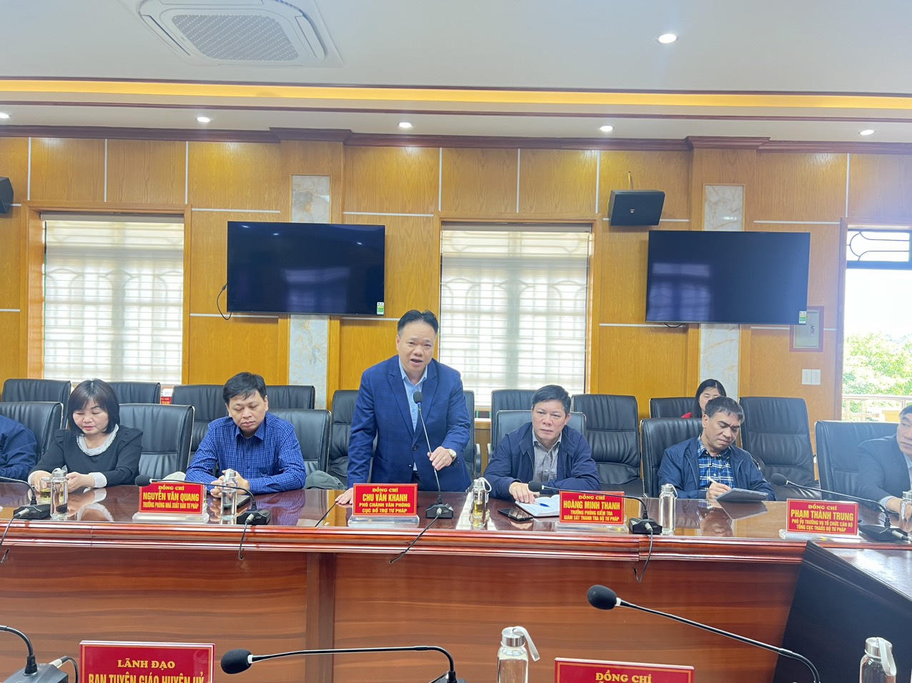 Bí thư Đảng ủy, Tổng Biên tập Báo Pháp luật Việt Nam Tiến sĩ Vũ Hoài Nam rất vui mừng khi cùng đoàn công tác trở về quê hương được trao đổi kinh nghiệm, nắm bắt thực tiễn trong công tác xây dựng đảng. Đồng chí mong muốn cấp ủy chính quyền địa phương ngày càng đoàn kết, phát triển vững mạnh, đồng hành cùng Báo Pháp luật Việt Nam trong công tác truyền thông thông tin góp phần đưa huyện Yên Mô là một trong những huyện đi đầu trong nhiều lĩnh vực.