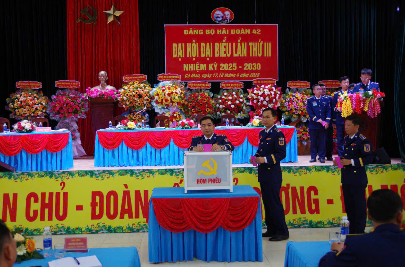Các đại biểu bỏ phiếu Bầu Ban Chấp hành Đảng bộ Hải đoàn 42 lần thứ III, nhiệm kỳ 2025 – 2030 |