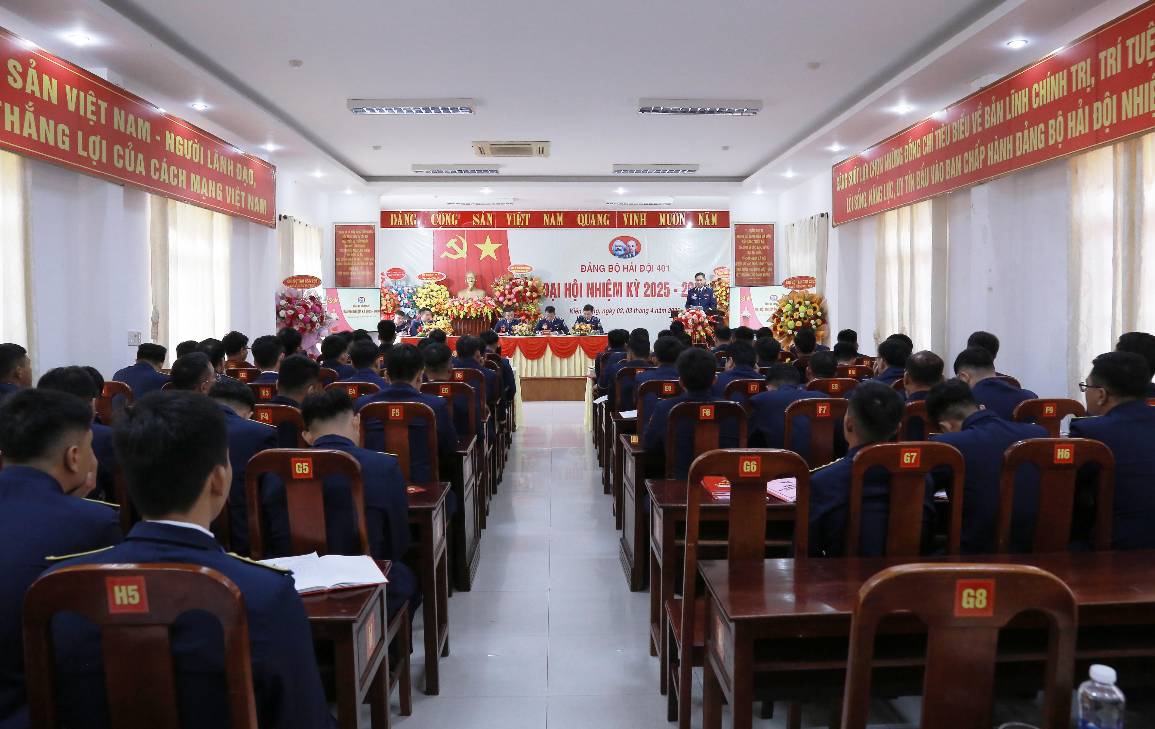 (PLVN) - Trong 2 ngày (2 - 3/4), tại thành phố Phú Quốc, tỉnh Kiên Giang, Đảng bộ Hải đội 401 (thuộc Đảng bộ Vùng Cảnh sát biển 4) đã tổ chức thành công tốt đẹp Đại hội Đảng bộ nhiệm kỳ 2025 - 2030. Thiếu tướng Nguyễn Văn Dũng - Bí thư Đảng ủy, Chính ủy Bộ Tư lệnh Vùng Cảnh sát biển 4 dự và chỉ đạo Đại hội.