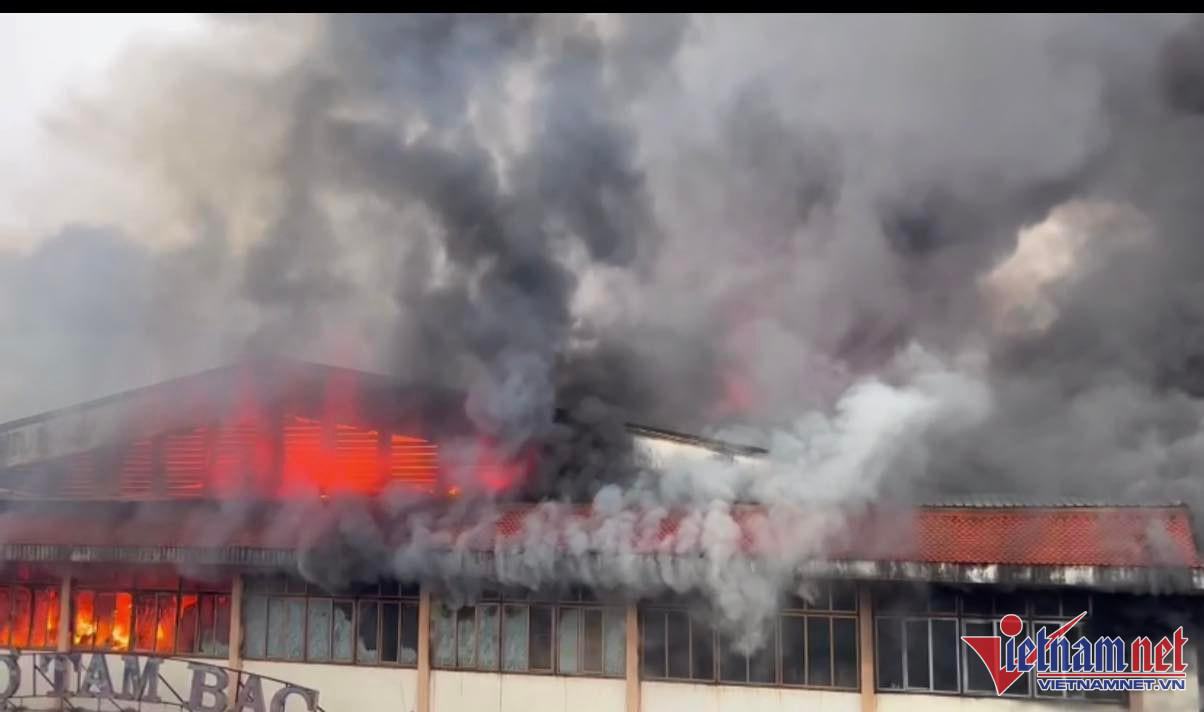 Ngọn lửa bốc lên ngùn ngụt từ trong chợ Tam Bạc. Ảnh: VietNamNet