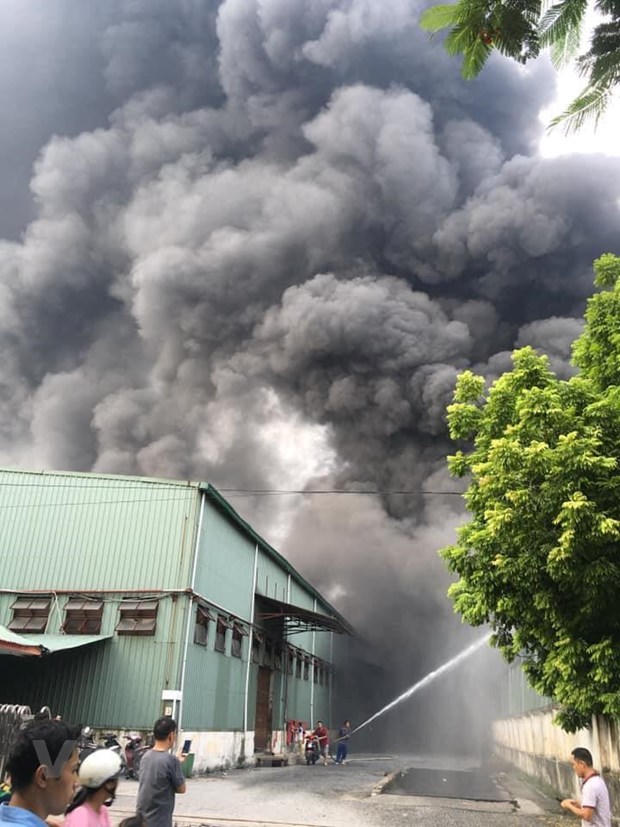 Theo quan sát của phóng viên, một dãy nhà xưởng lợp tôn của Công ty này bị lửa bao phủ, khói bốc ra cuồn cuộn. Nhiều xe cứu hỏa đang được huy động tới hiện trường.