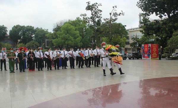 Tiếp đó, đoàn đại biểu dâng hoa Tượng đài Chủ tịch Hồ Chí Minh tại khuôn viên trung tâm Thành phố, bày tỏ lòng thành kính và biết ơn vô hạn đối với công lao to lớn của Chủ tịch Hồ Chí Minh- vị lãnh tụ thiên tài của Đảng và nhân dân ta../